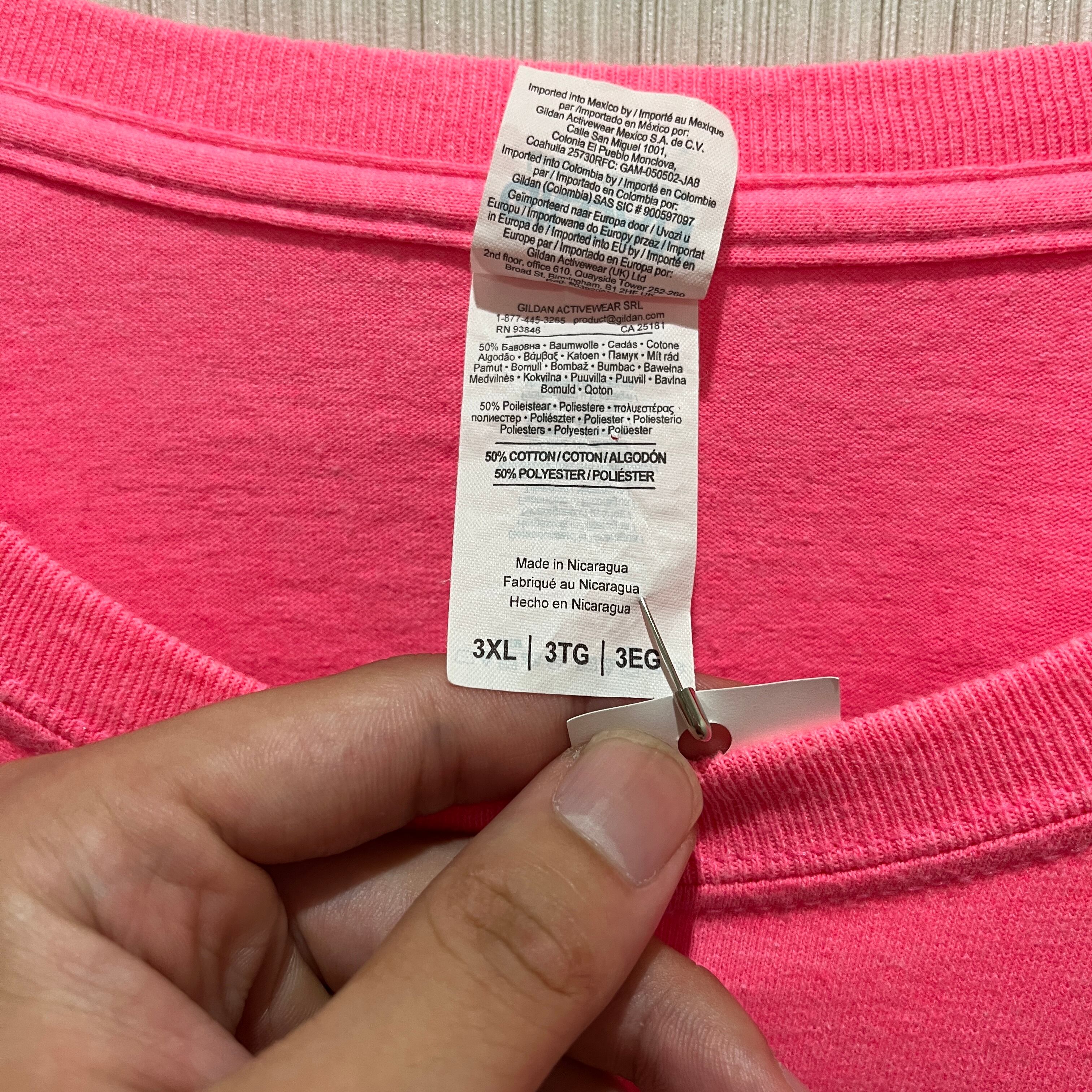 ピンクのTACKLE BREAST CANCERプリントTシャツ、3XLサイズ、コットン混紡素材。