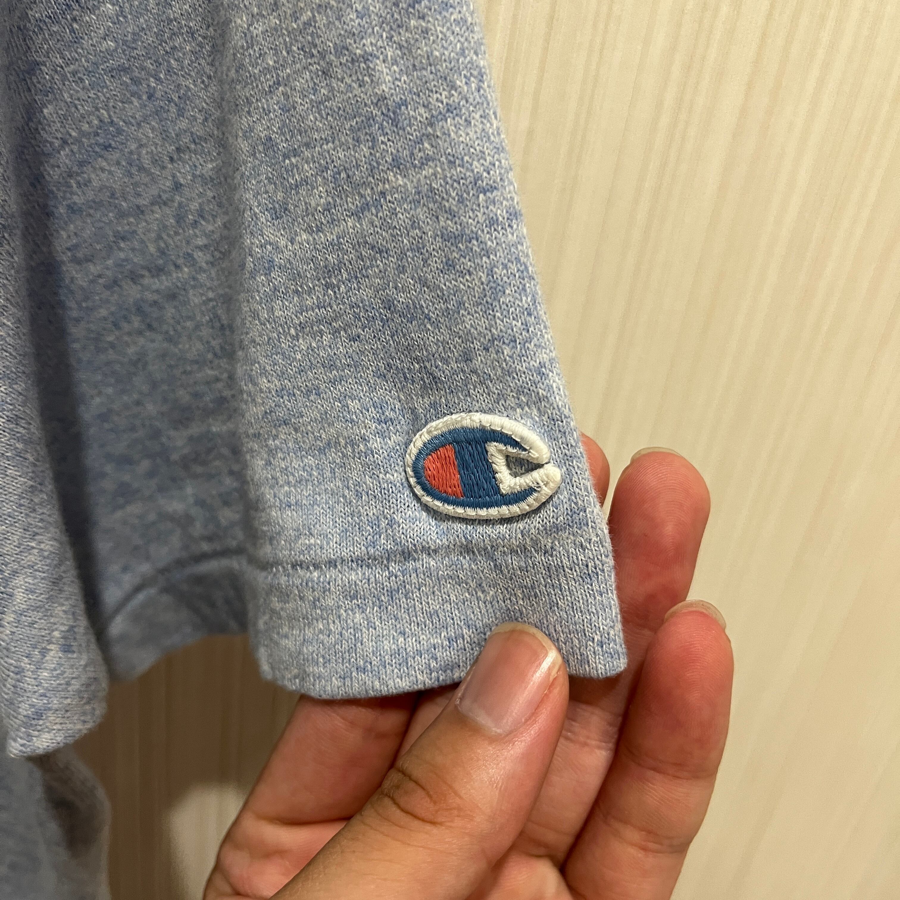 ライトグレーのChampion製Tシャツ、WESTERN VIEW TRACKデザイン。