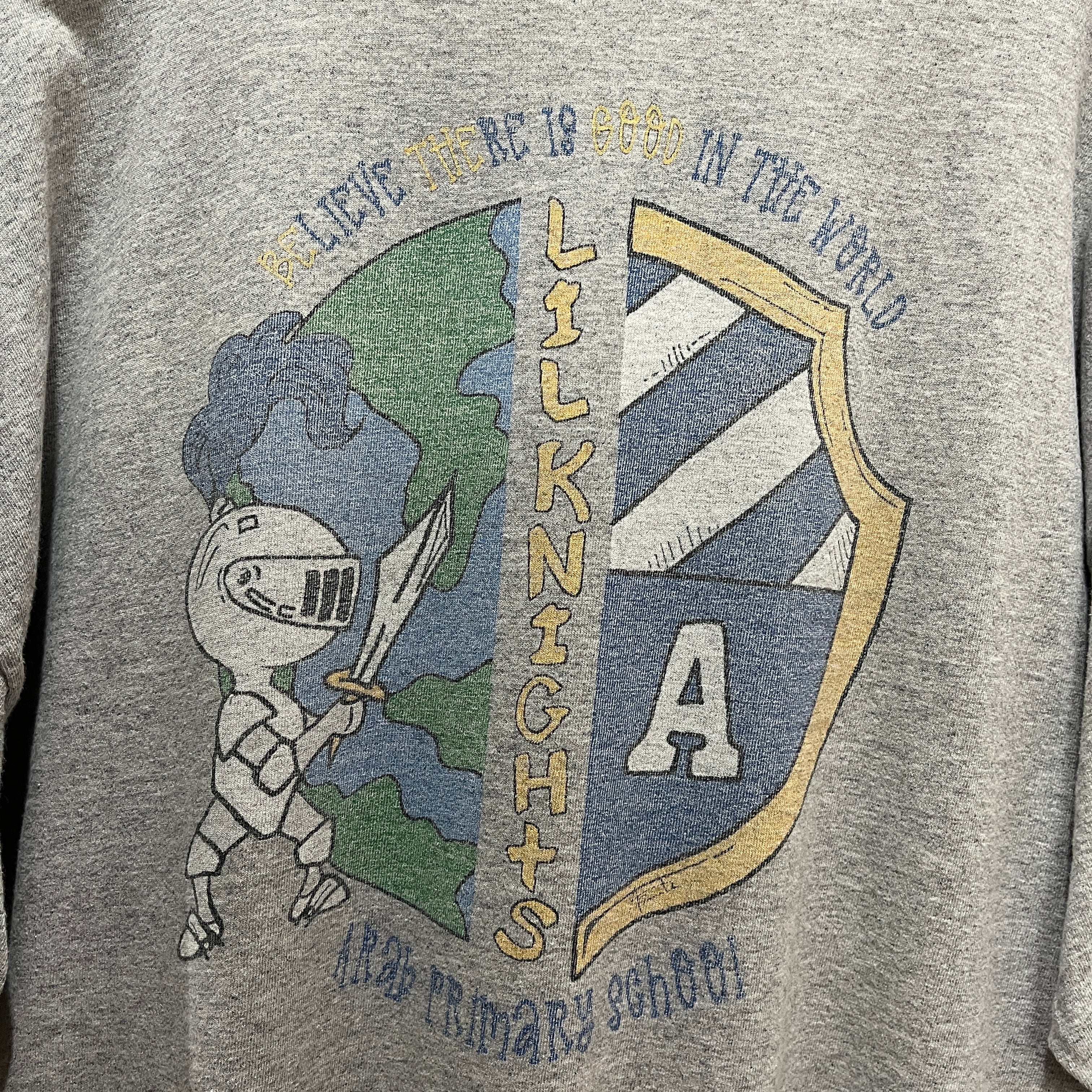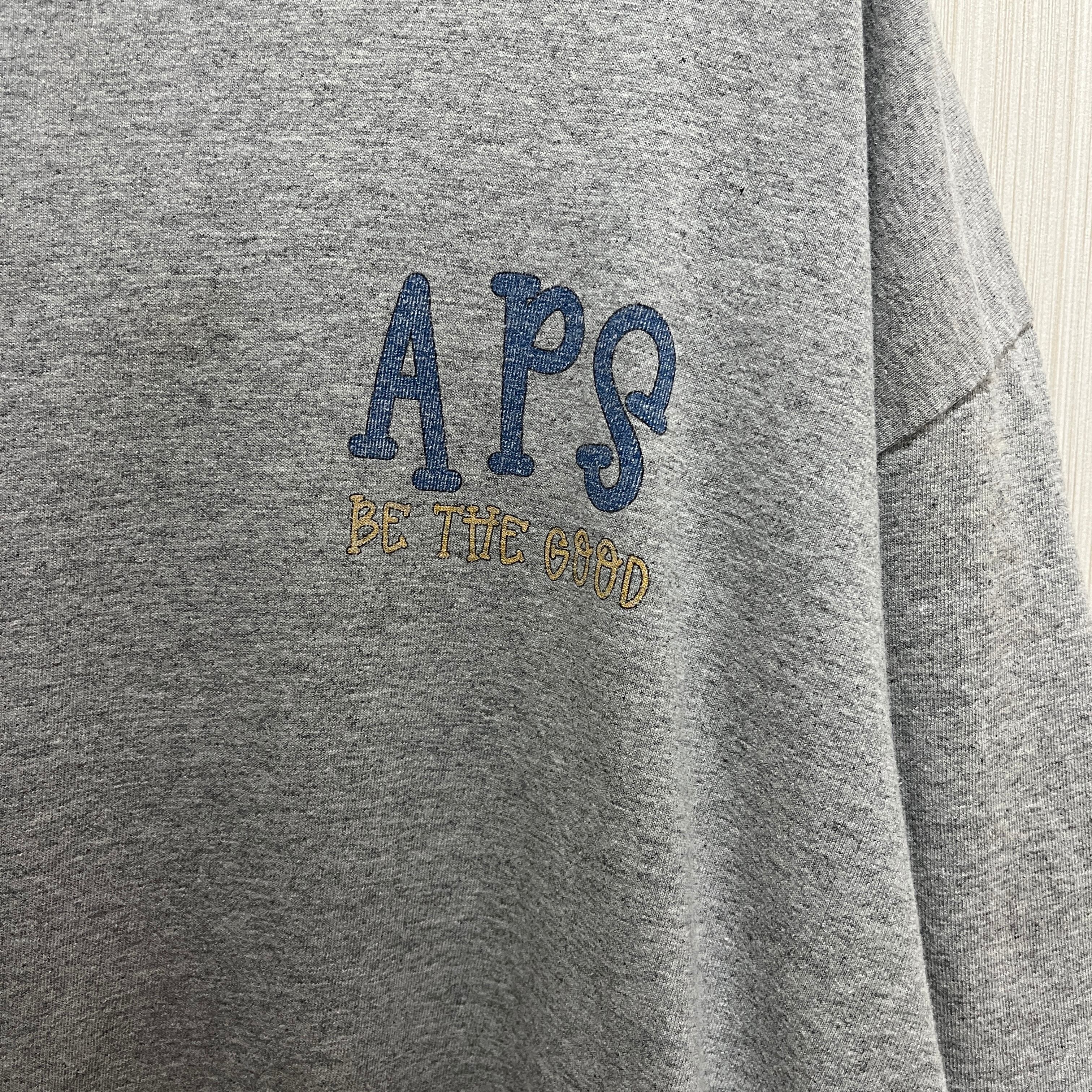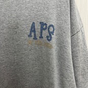 A.P.S.のロゴが特徴的なグレーのTシャツ。