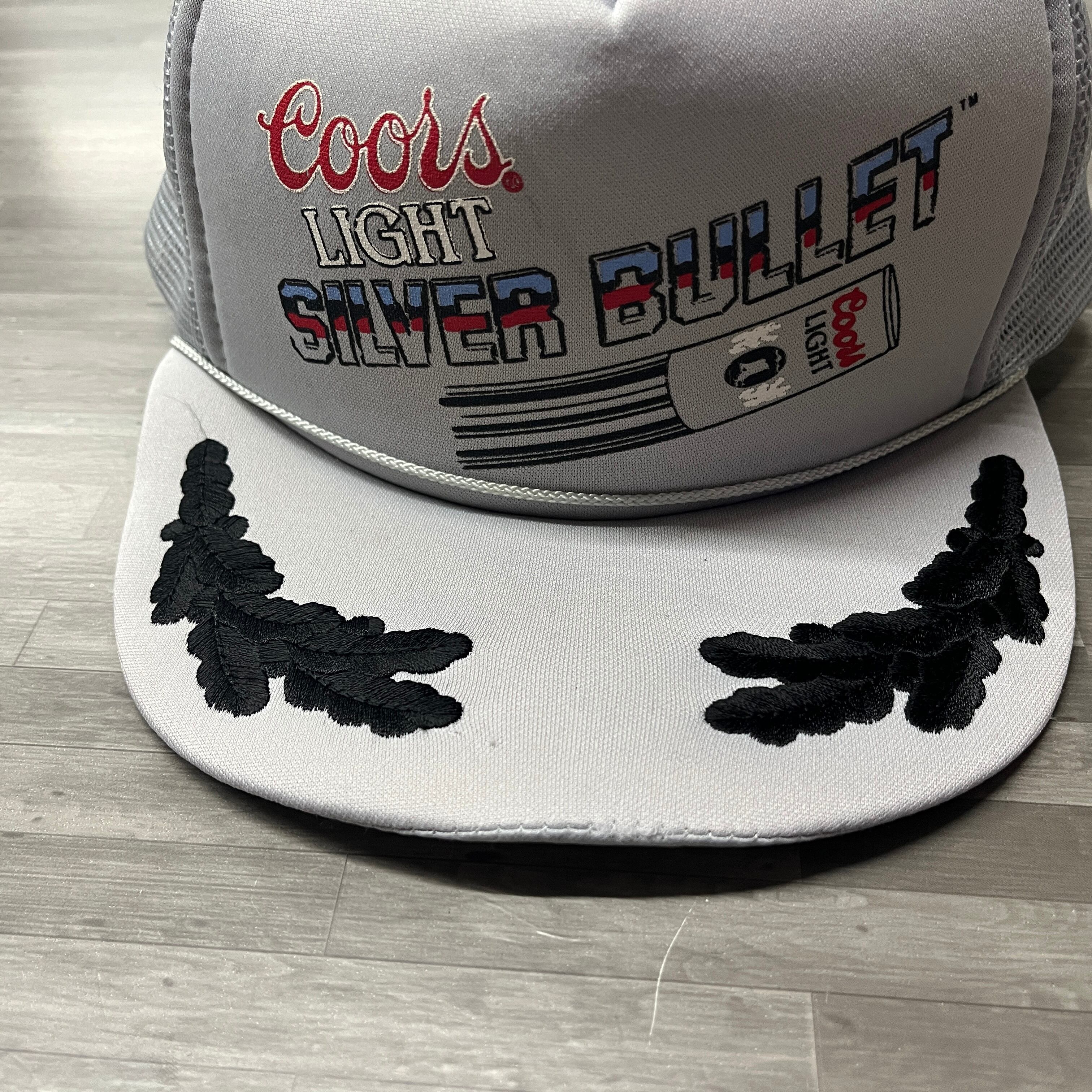 グレーのメッシュキャップ、フロントにCoors LightのロゴとSilver Bulletデザイン。