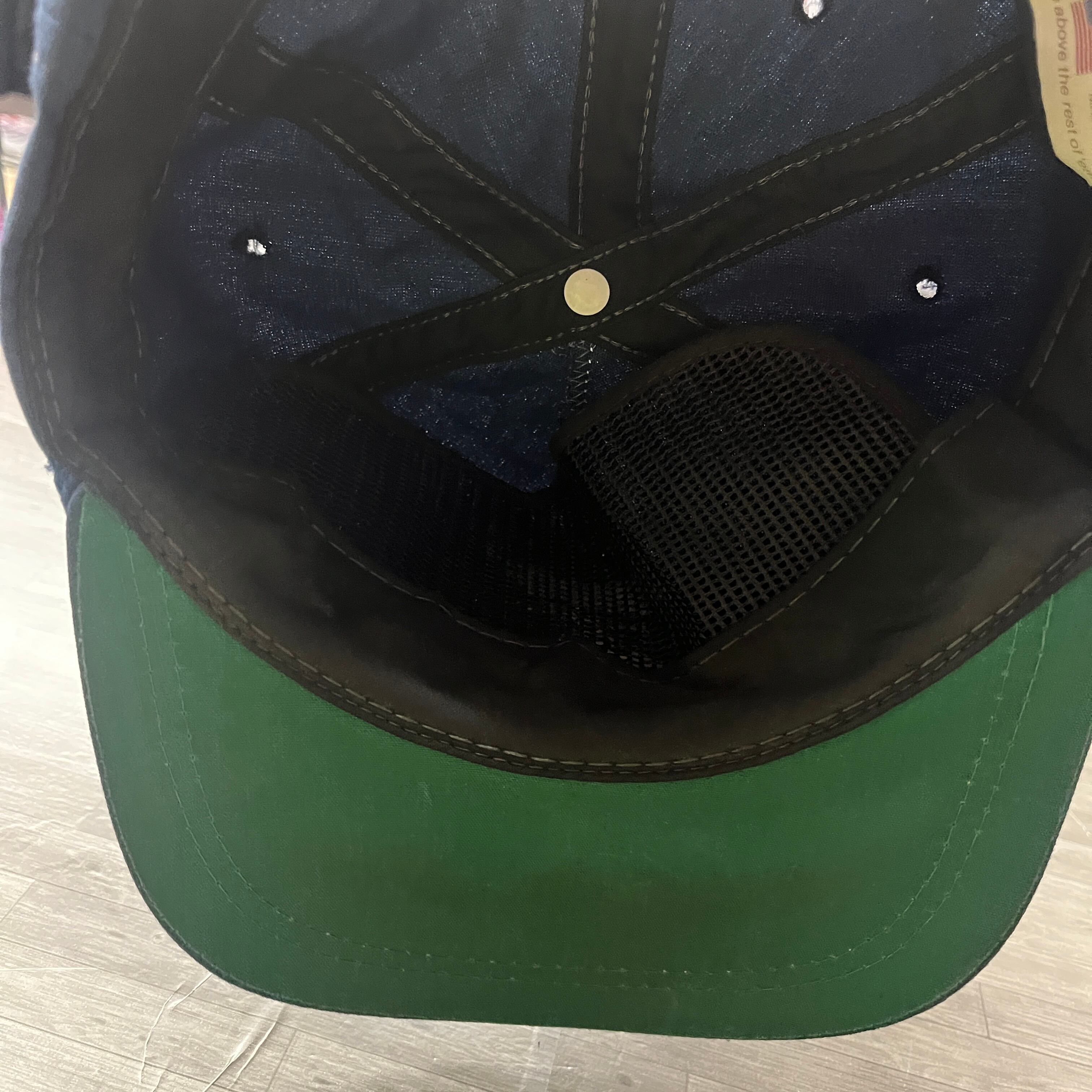 FT. ORD G.C. BAYONETの刺繍が施されたネイビーのナイロンキャップ。