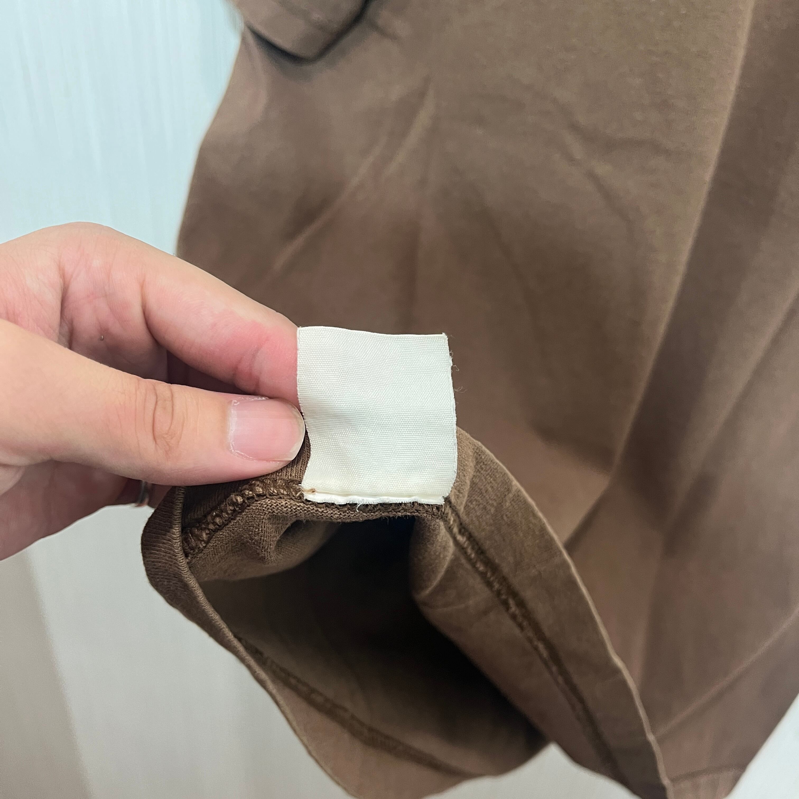 ボブ・マーリーの「NO MORE TROUBLE」デザインのブラウンTシャツ。