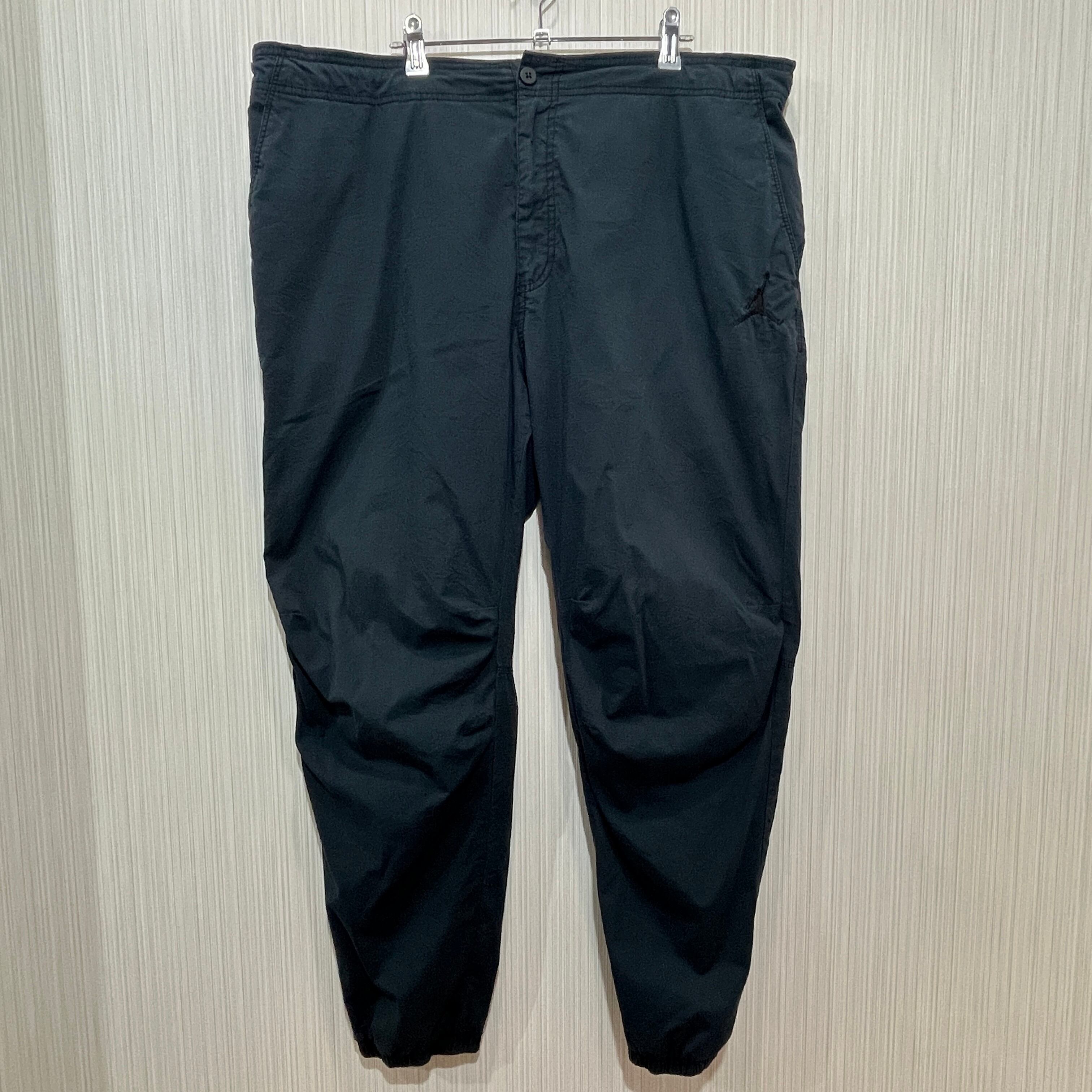 ジャンプマンロゴ入りのカジュアルな黒のストレートカットパンツ。
