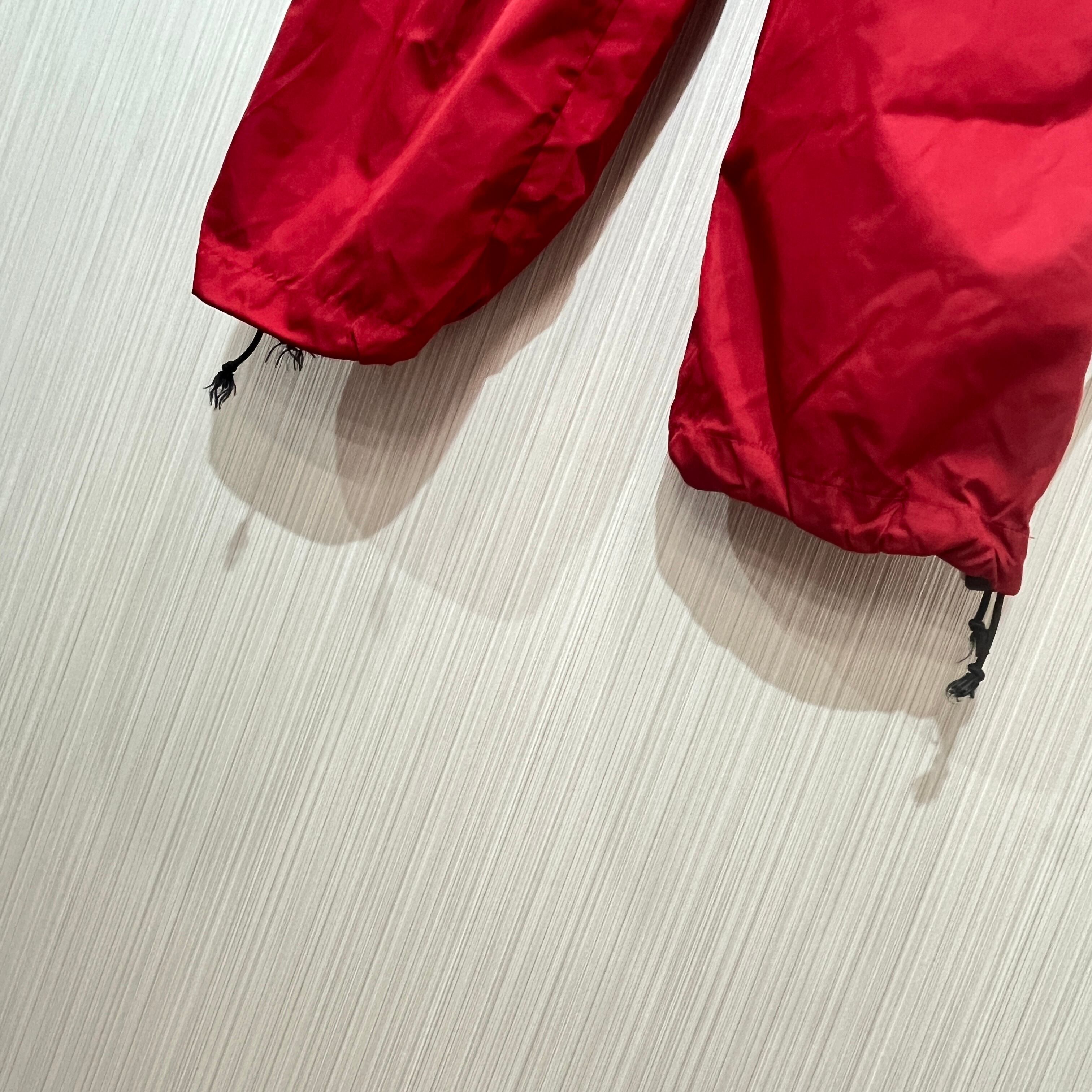 レッドとグレーの配色が特徴のNikeのストレートパンツ。裾にはドローコードが付いており、調整可能。00s