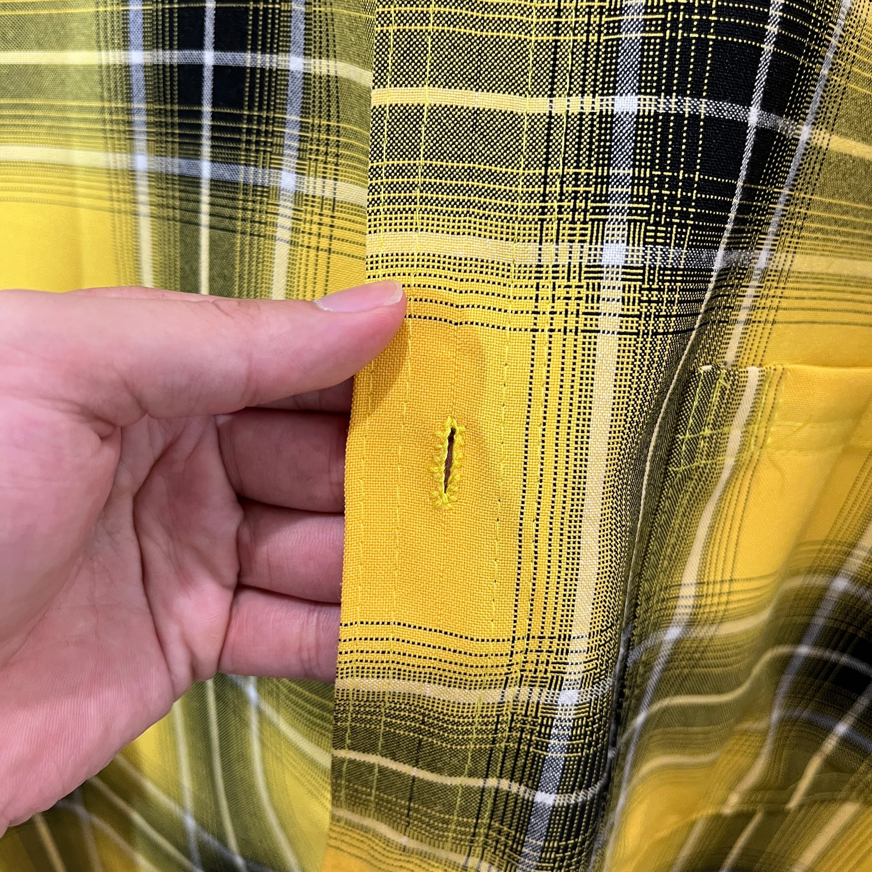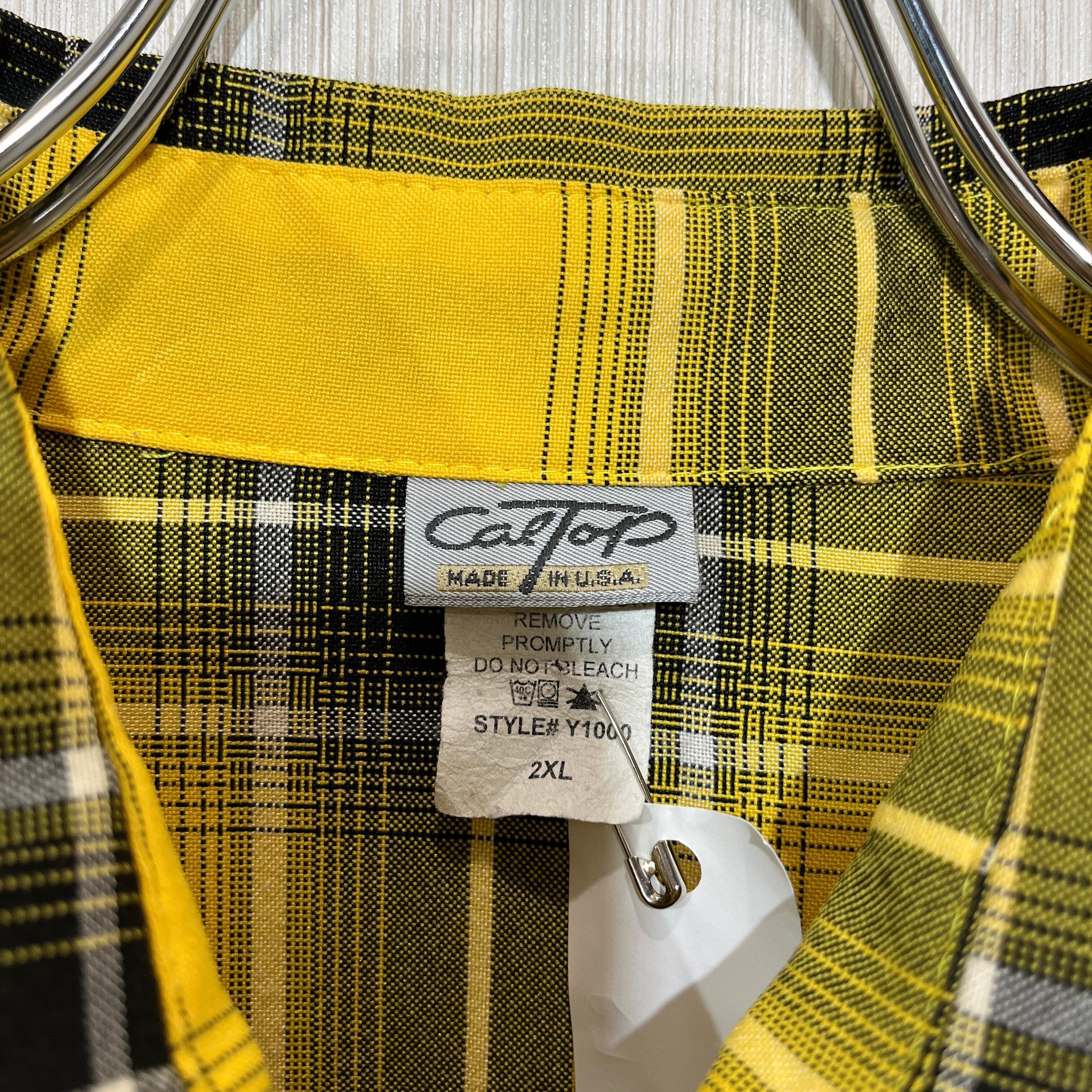 イエローとブラックのチェック柄の半袖シャツ、カジュアルスタイルに最適。