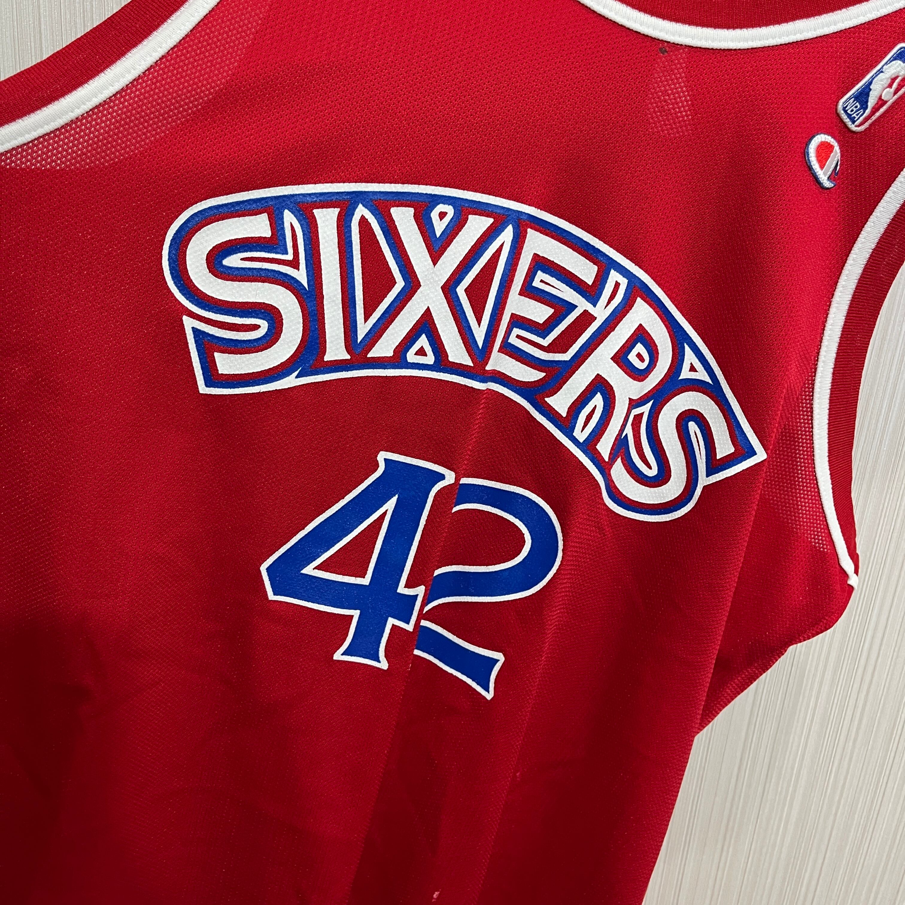 Champion製のSixersタンクトップ、番号42、NBAロゴ付き。
