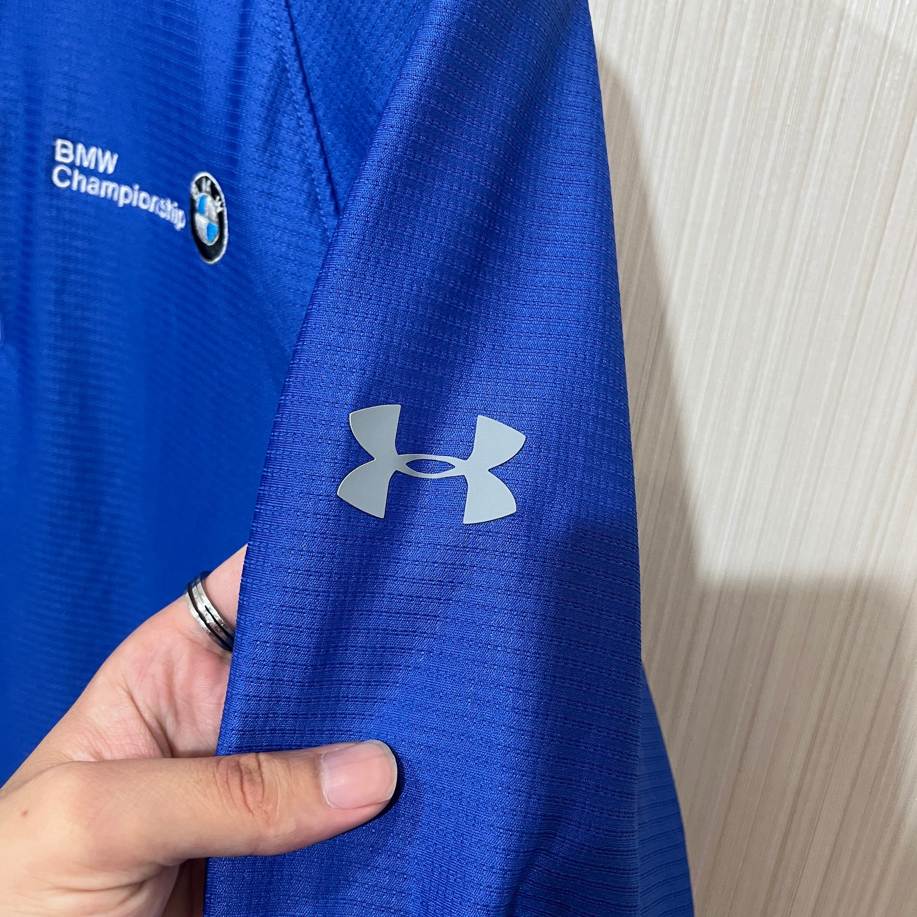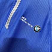 BMW Championshipのハーフジップ長袖カットソー、快適なポリエステル素材。