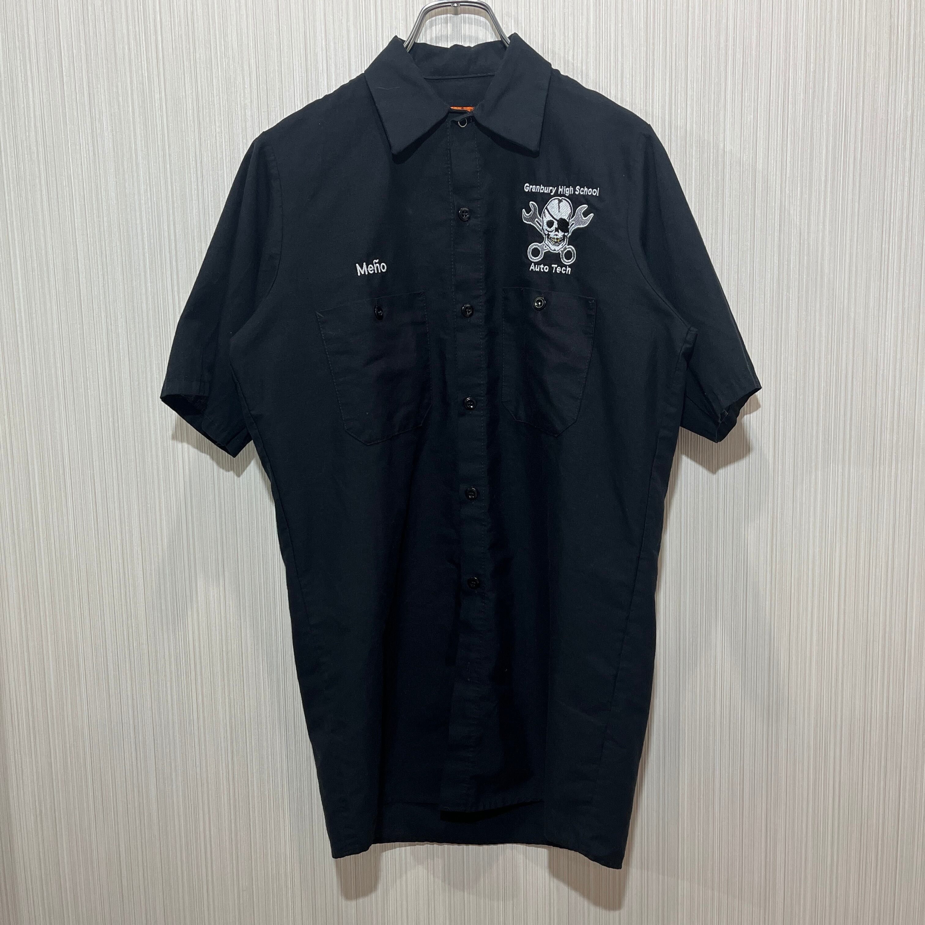 Granbury High SchoolのAuto Tech刺繍入りの黒いワークシャツ。