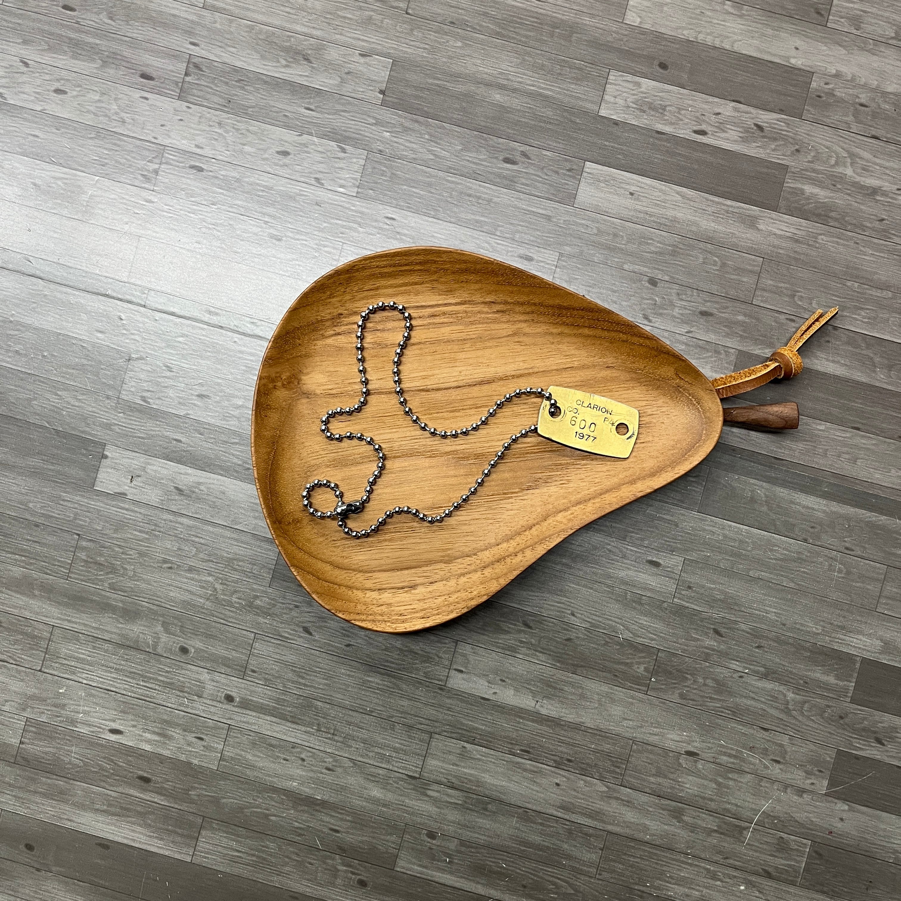 ドッグタグネックレス、1977年製の金色タグ付き。