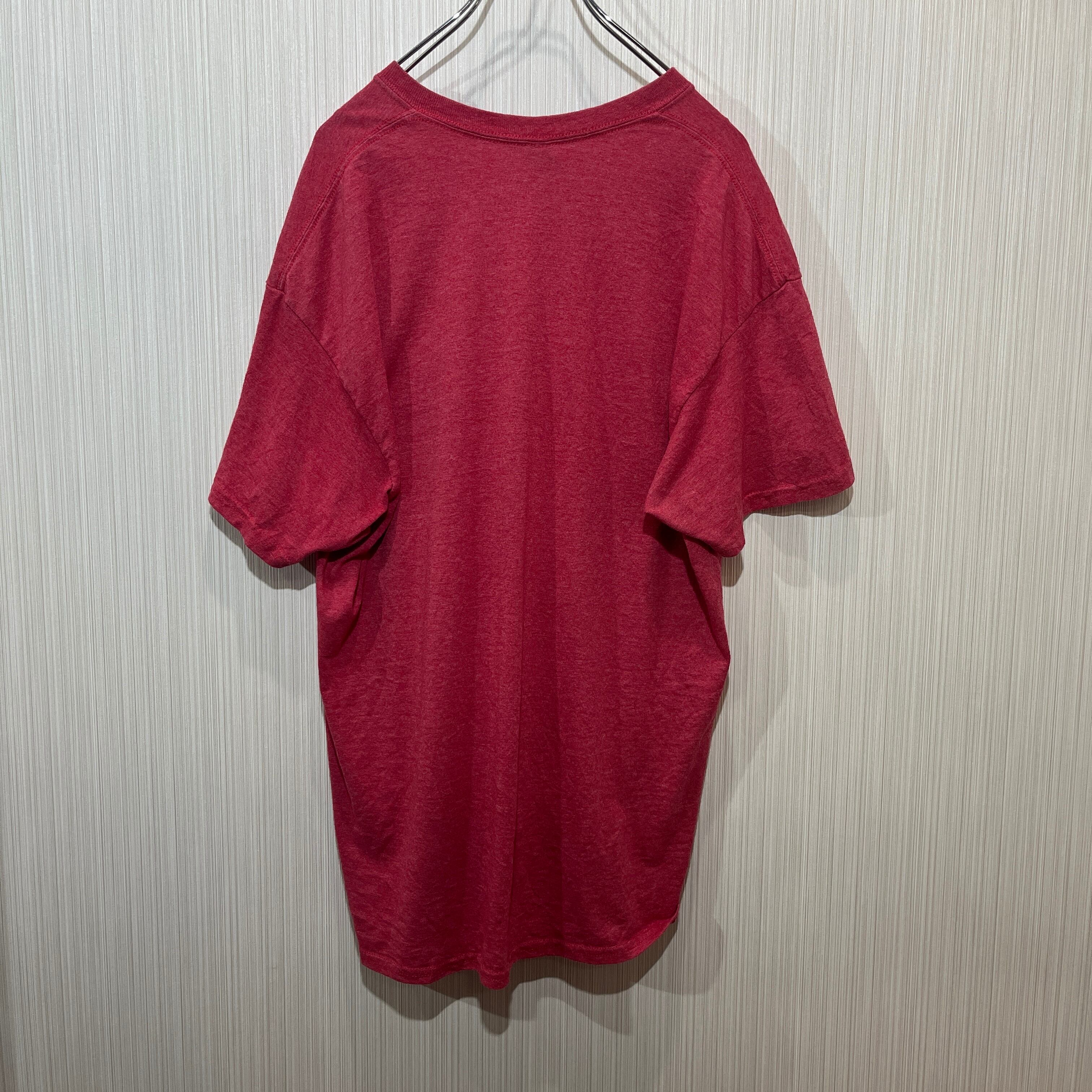 赤色のBOOMER BLOOD DONORデザインTシャツ、ルーズフィットスタイル。