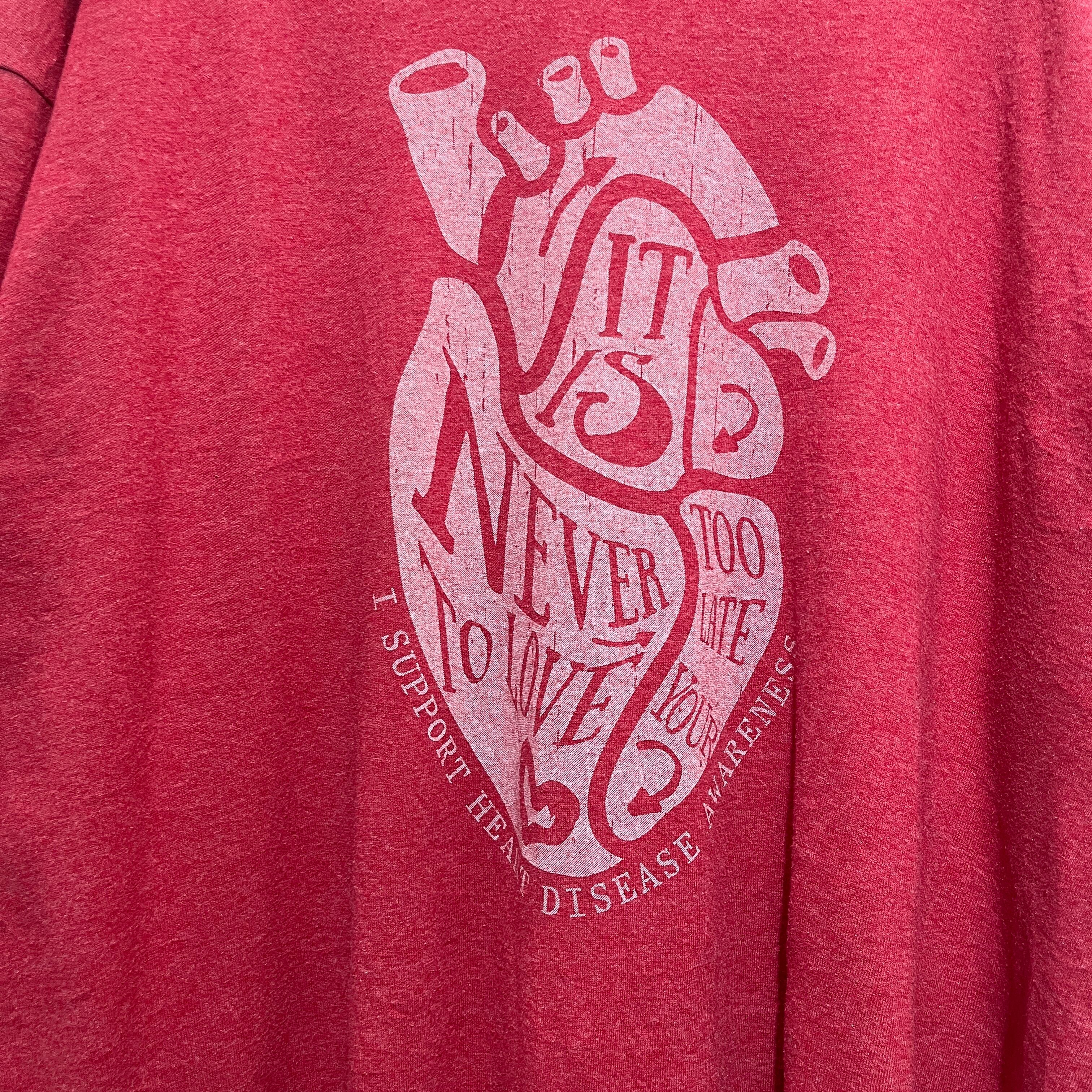 ハートプリント レッドTシャツ 病院 古着 アメカジ XL相当 グッドプリント