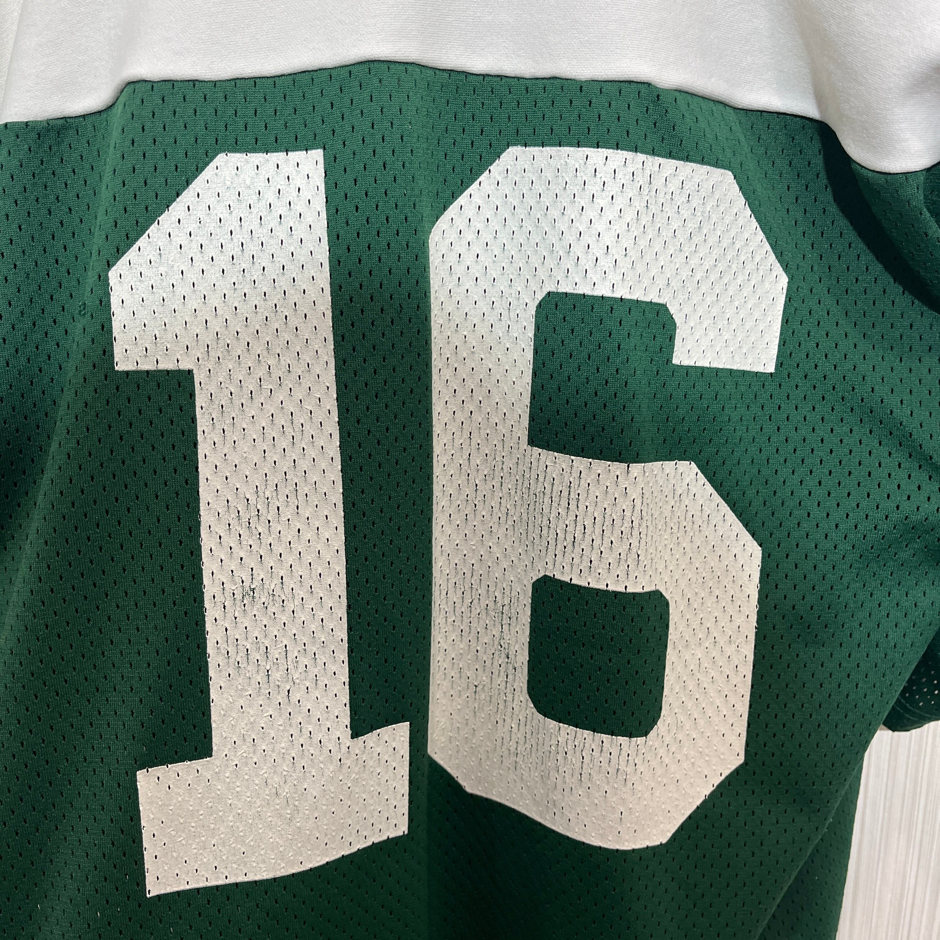 ダークグリーンとホワイトの配色、HUSKIES 16のデザインが特徴のLサイズのナイロン製シャツ。
