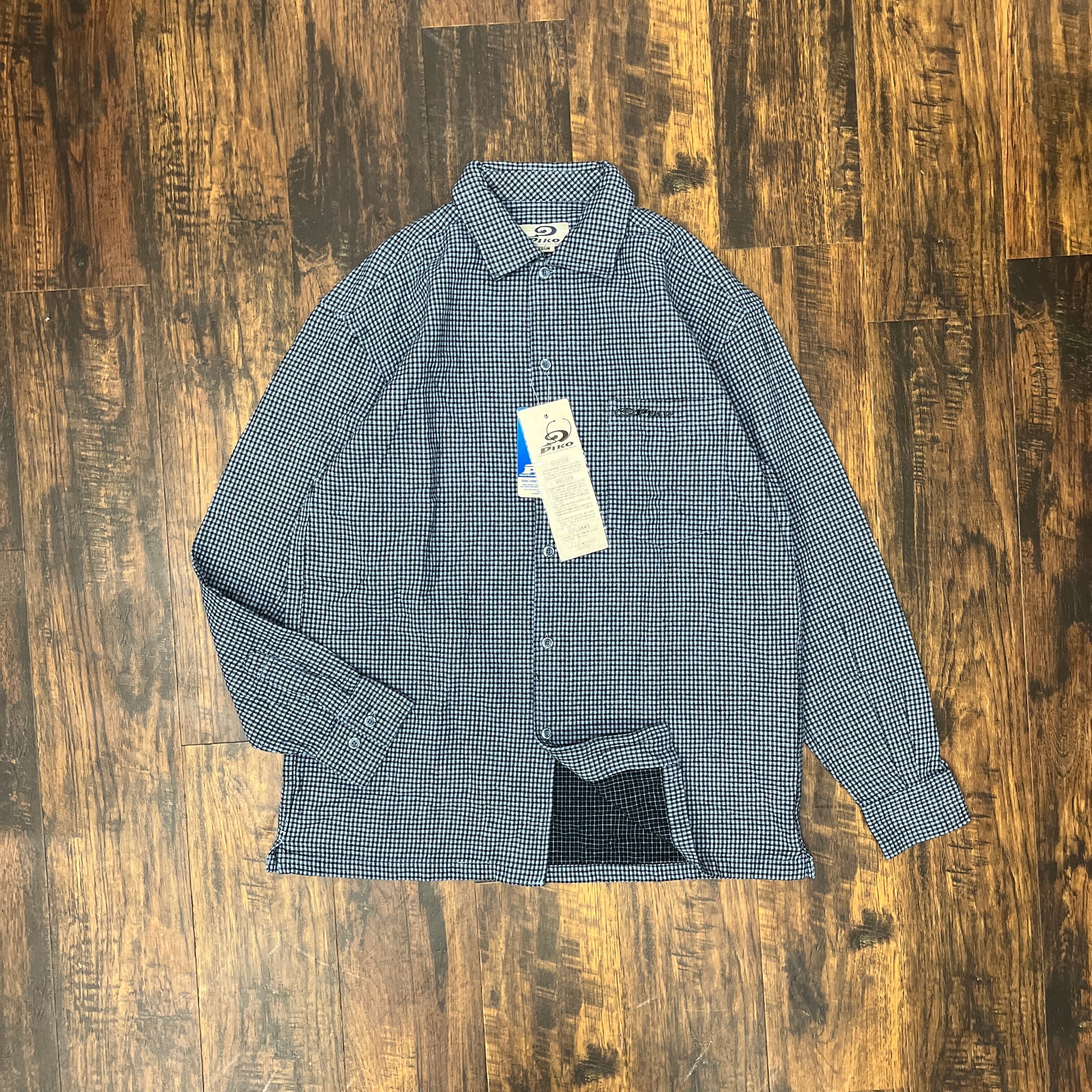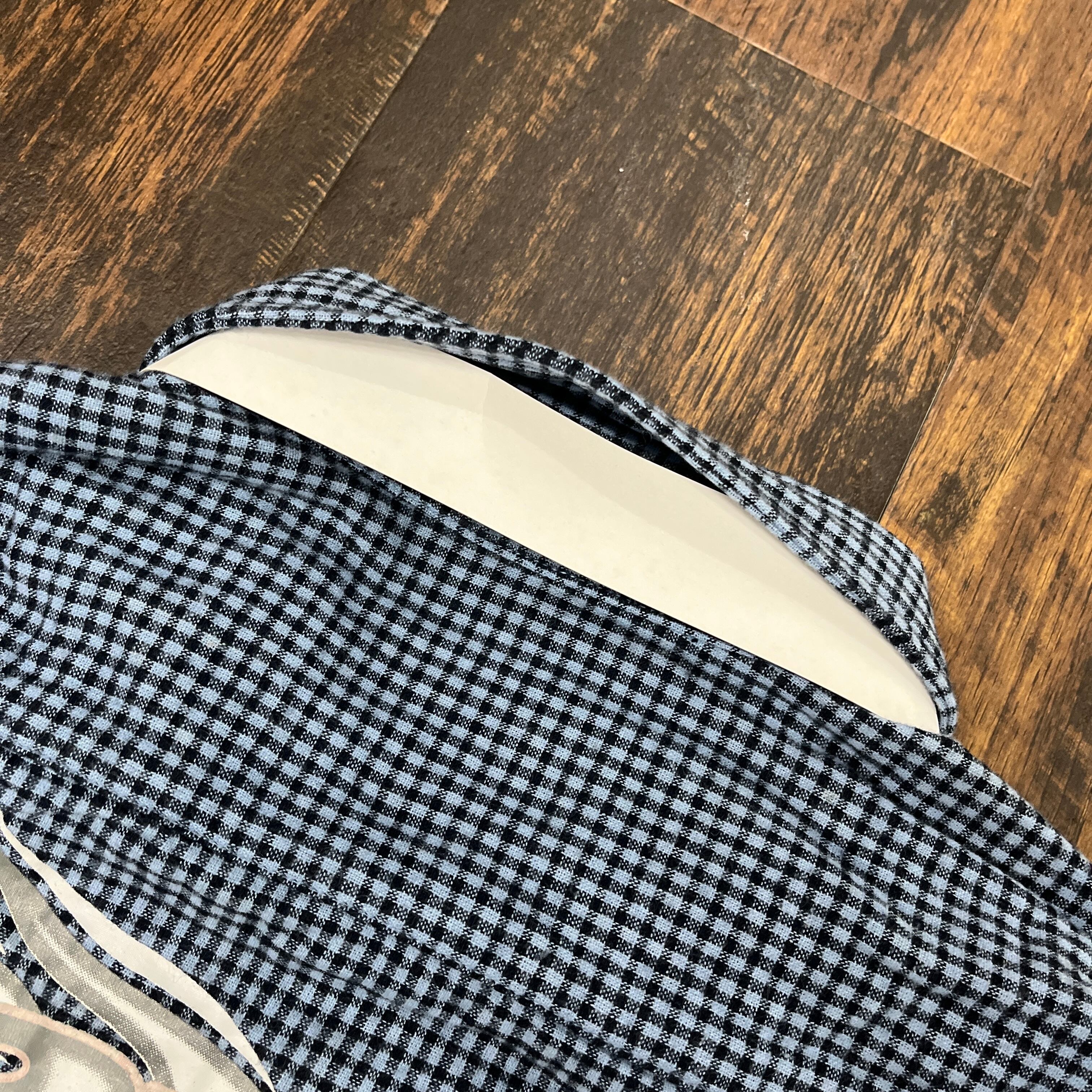 黒と白のチェック柄の長袖シャツ、カジュアルスタイルに最適。
