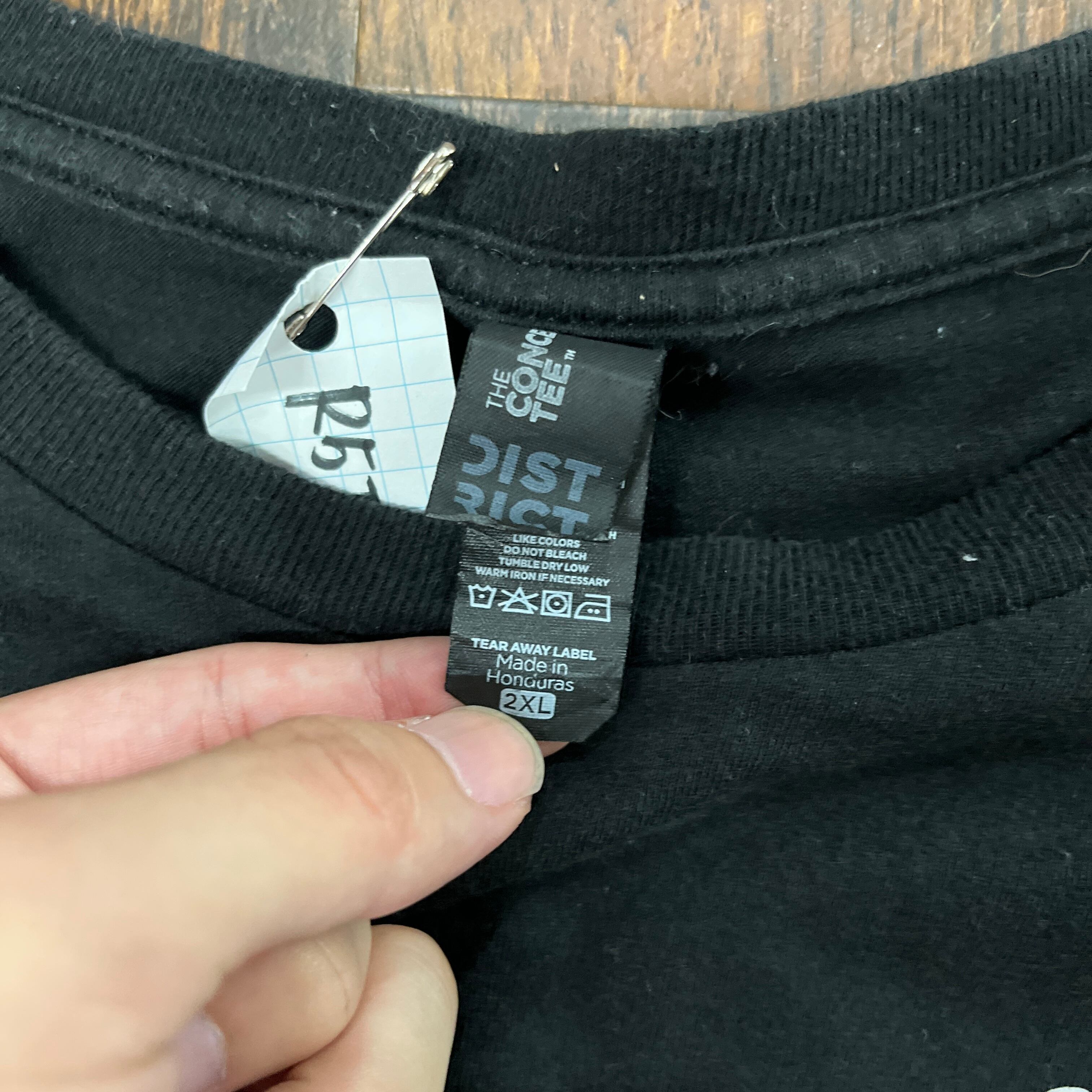 犬のイラストとユニークなメッセージが特徴の黒いTシャツ。