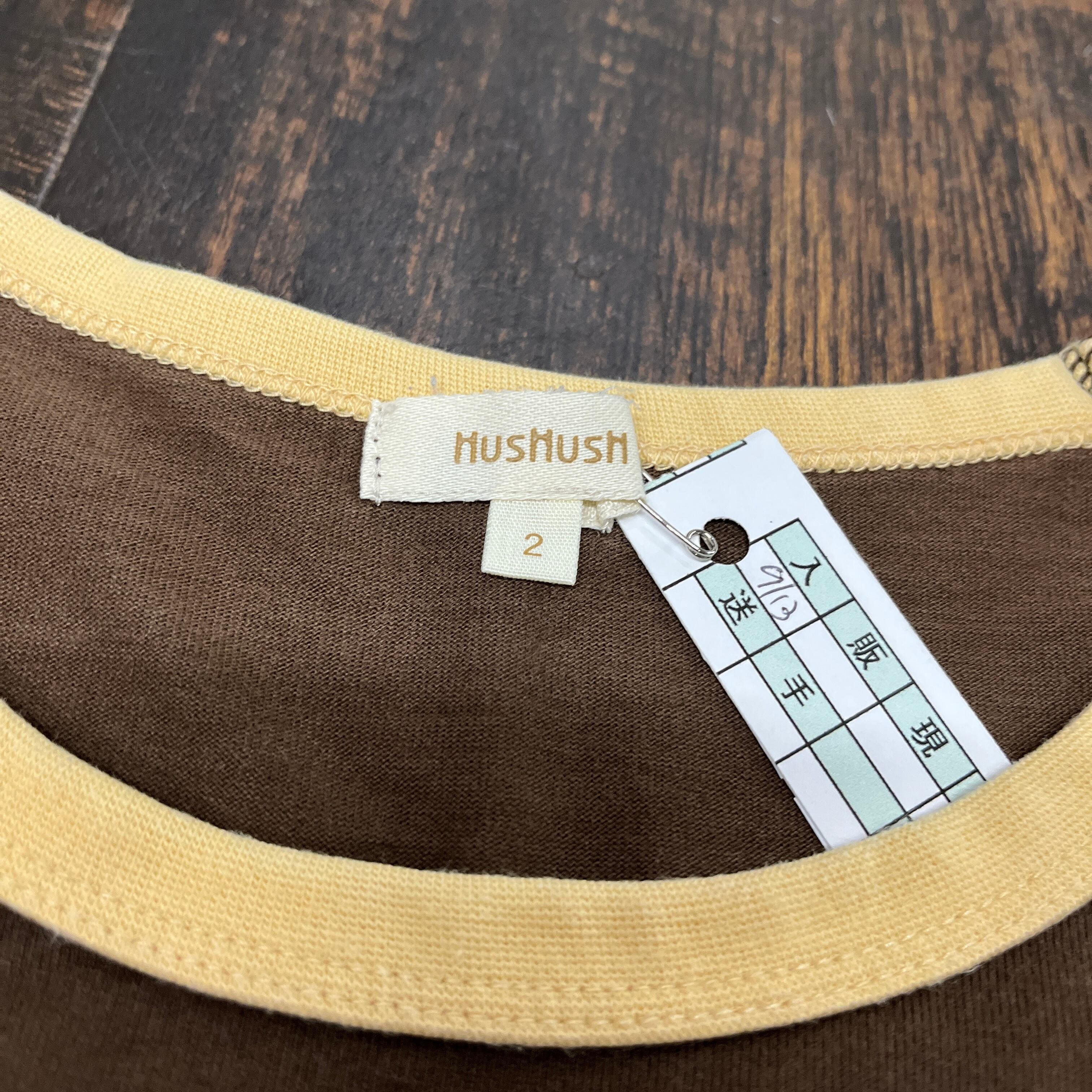 ブラウンの半袖Tシャツ、ロゴデザイン付き。