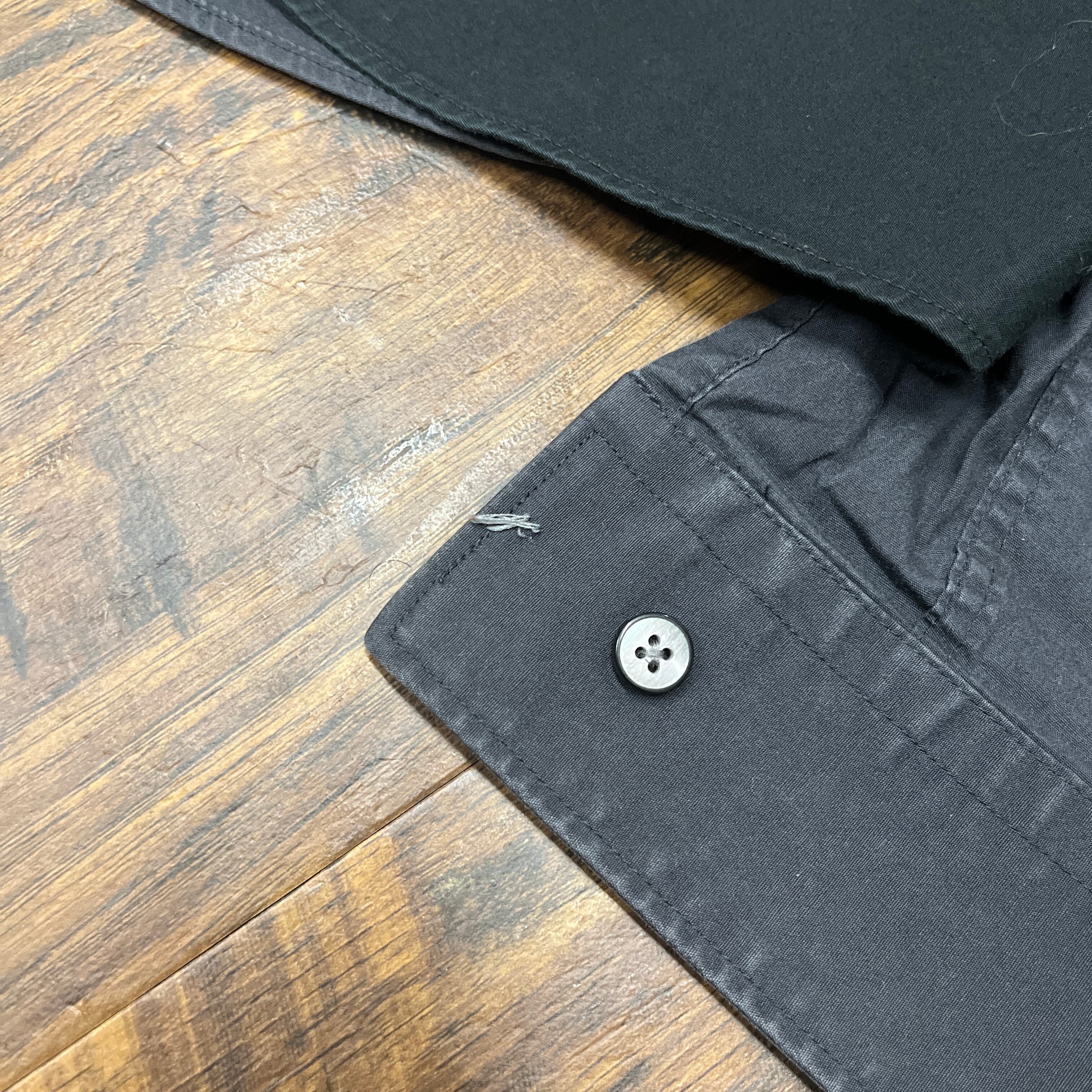 ブラックとグレーのコントラストが特徴のEXPRESSの長袖シャツ。