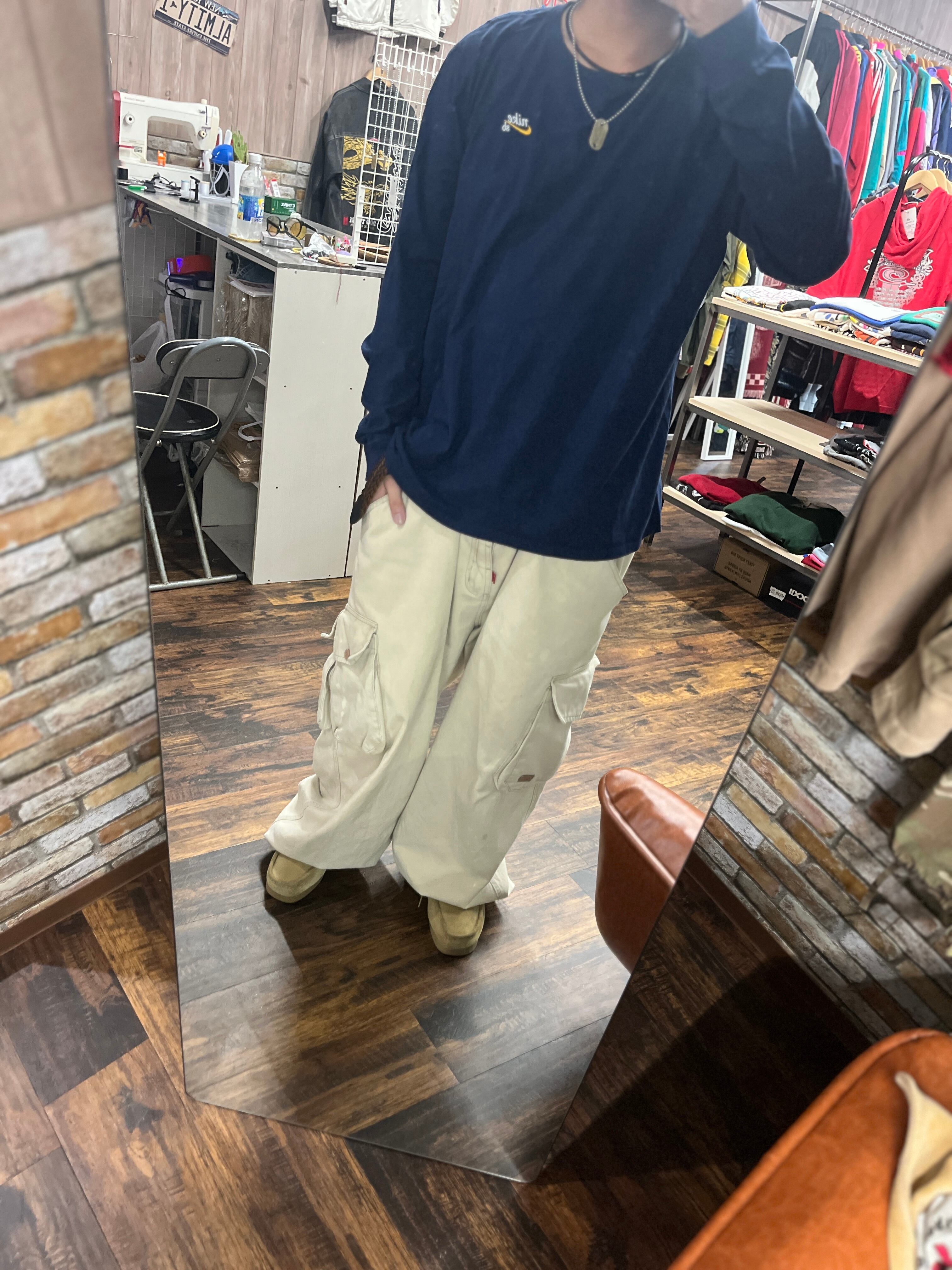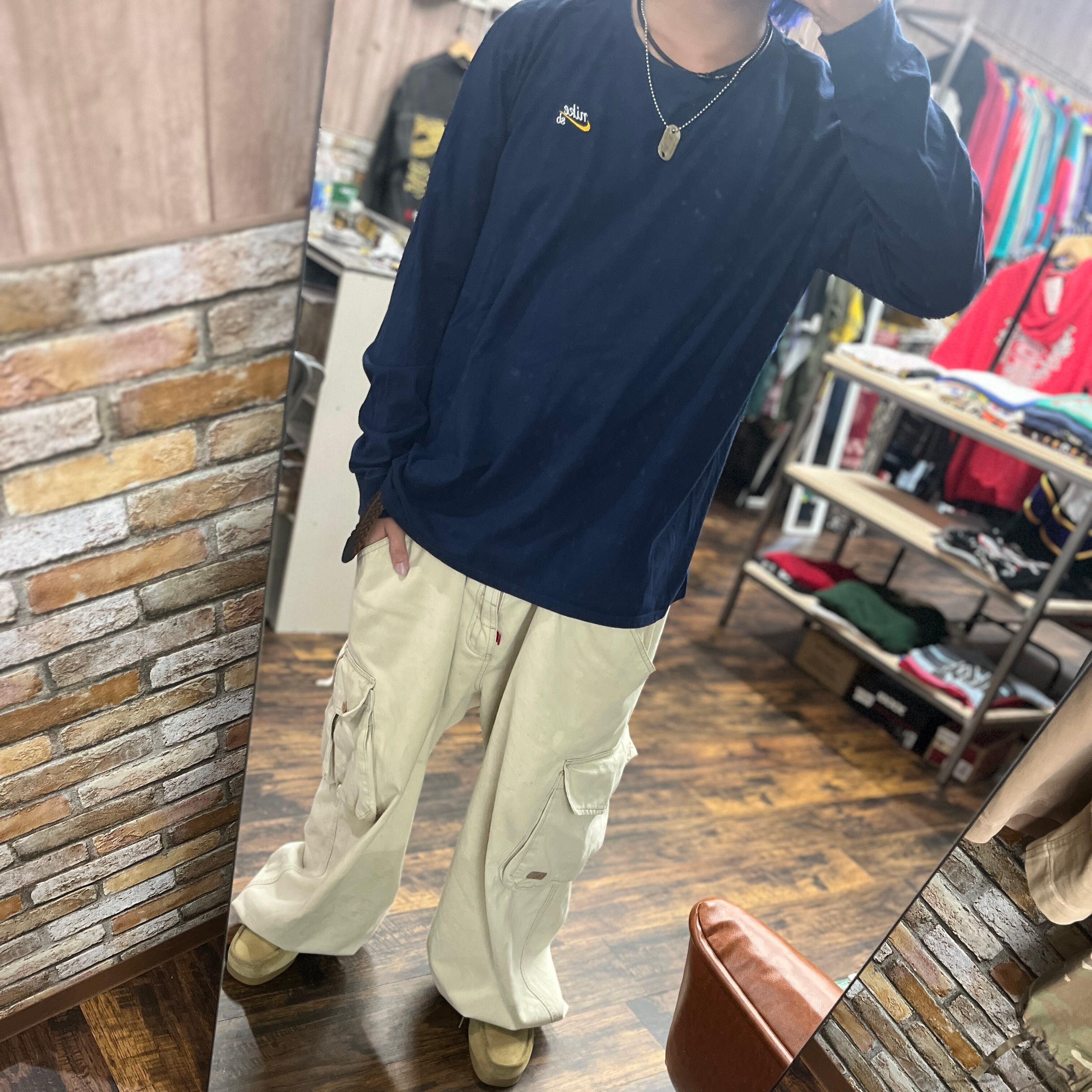 ネイビーのNikeロゴ入り長袖Tシャツ。