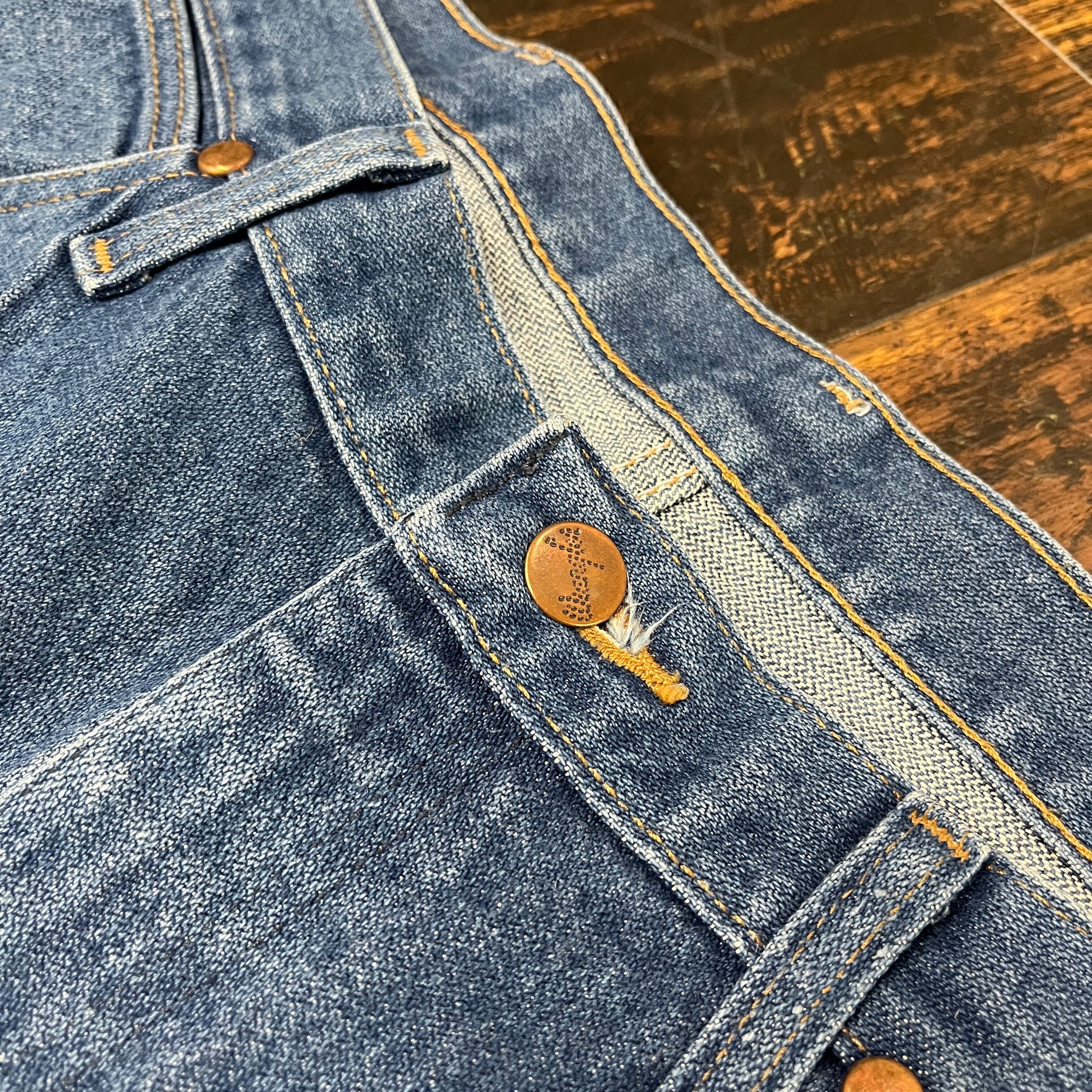 濃い青のストレートデニム、ボタン付きジッパーフライ。00年代のメキシコ工場への移行期の製造になります。