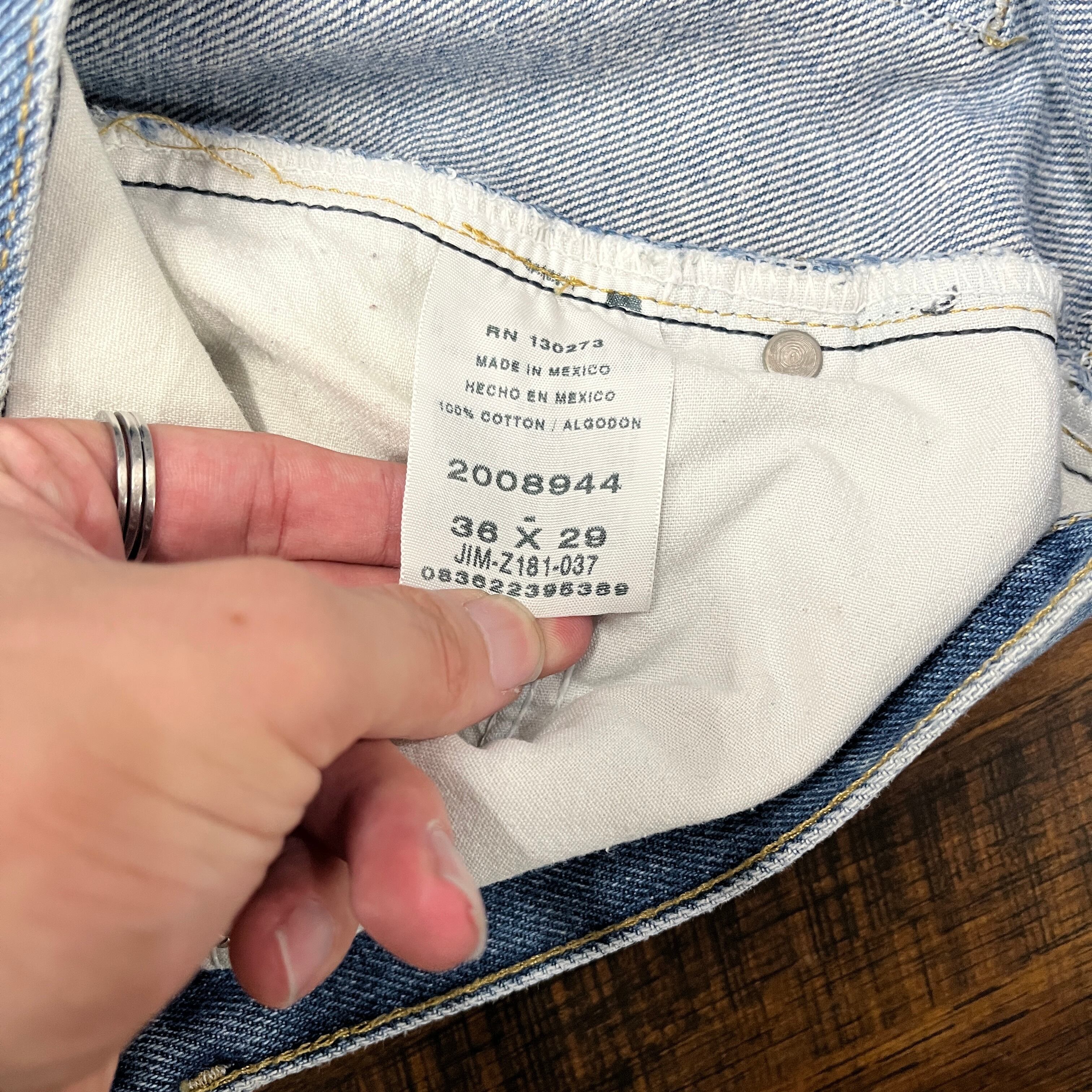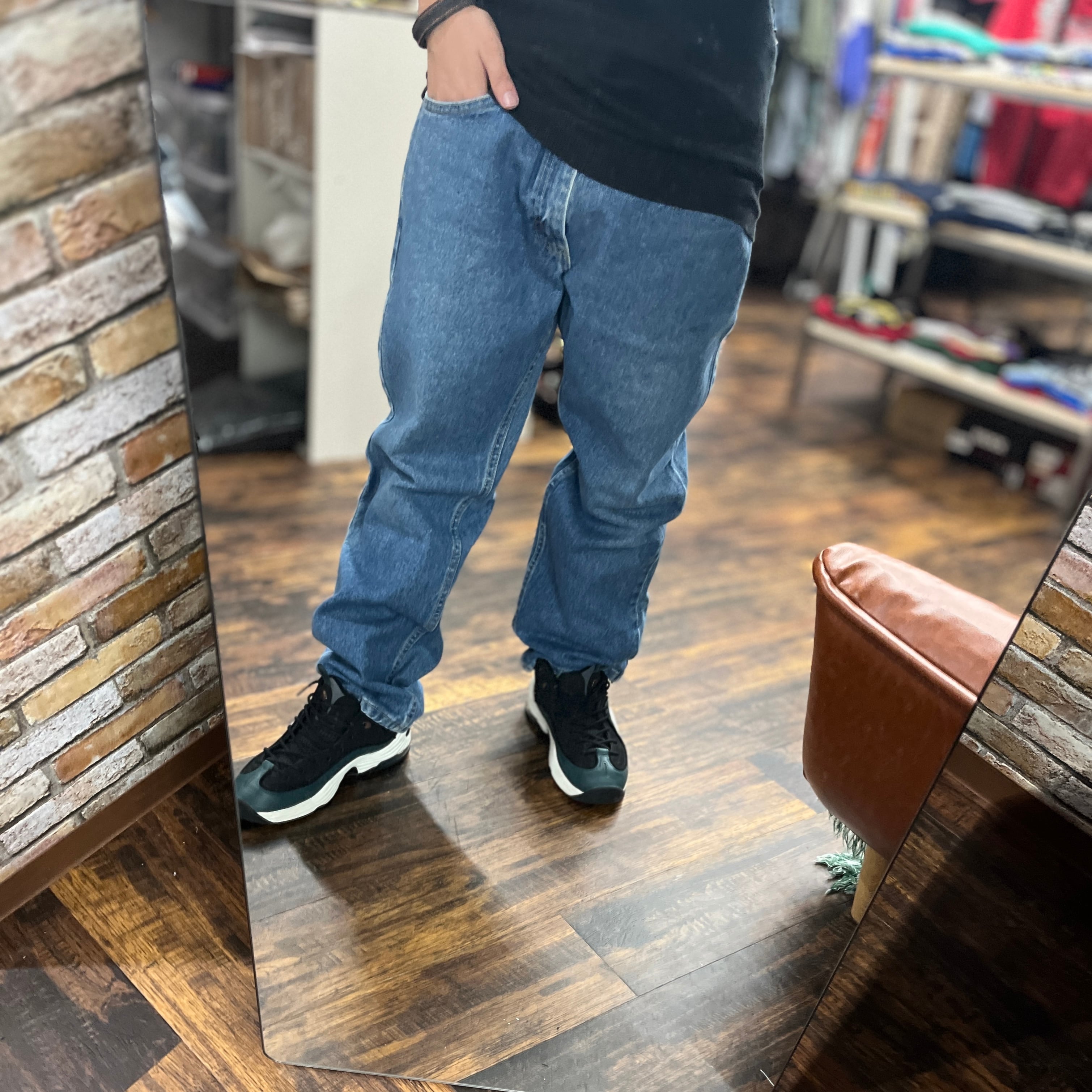 Leeのレギュラーフィットデニム、ブルーのストレートレッグスタイル。
