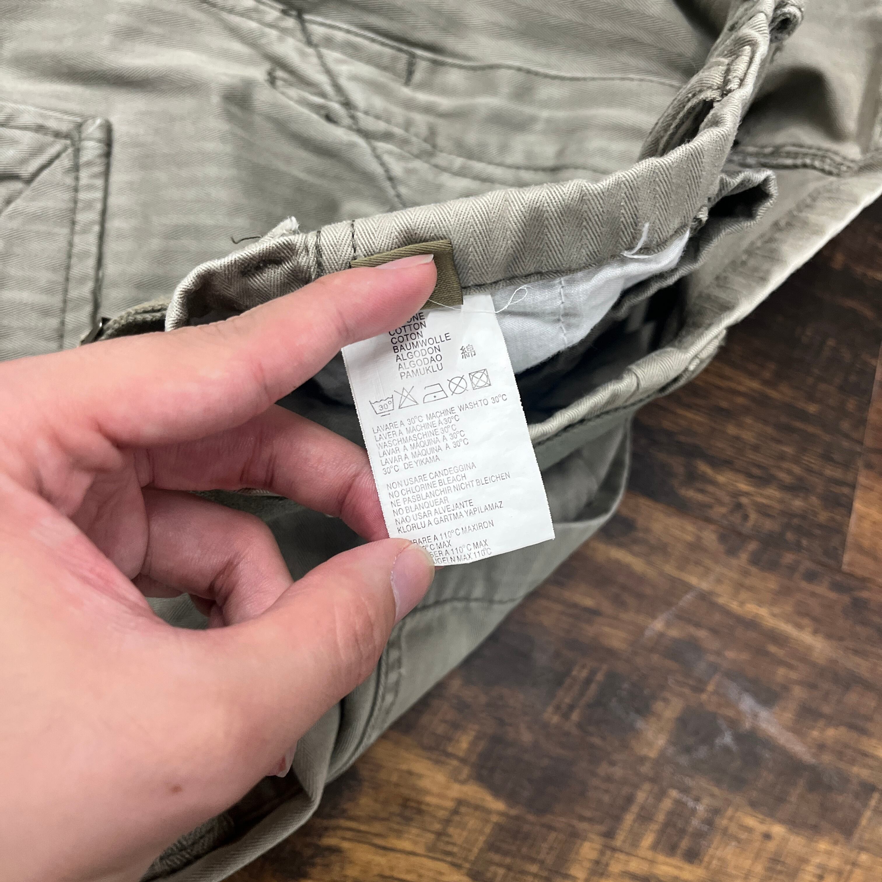 ストライプデザインの4ポケットカーゴパンツ、実用性とスタイルを兼ね備えたアイテム。