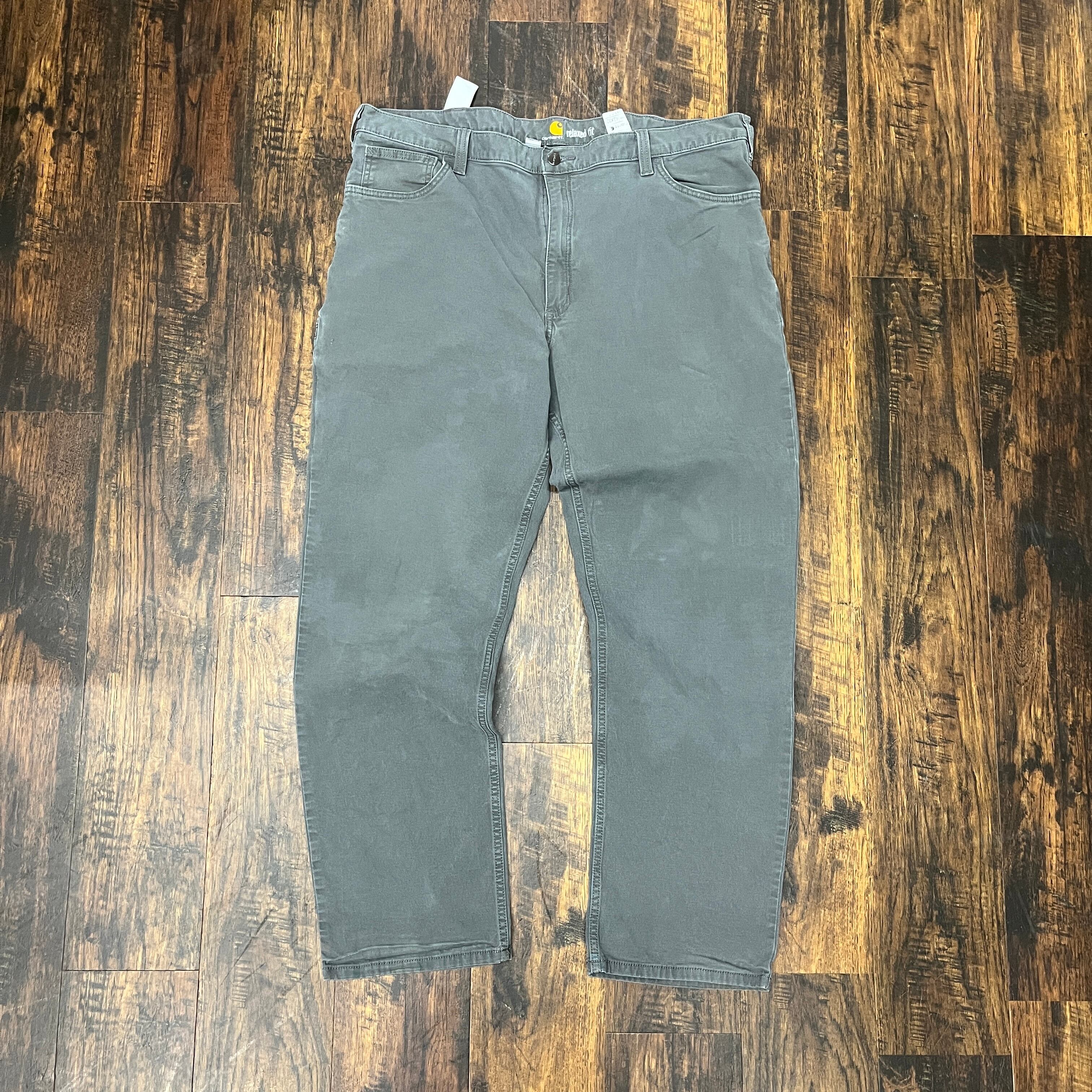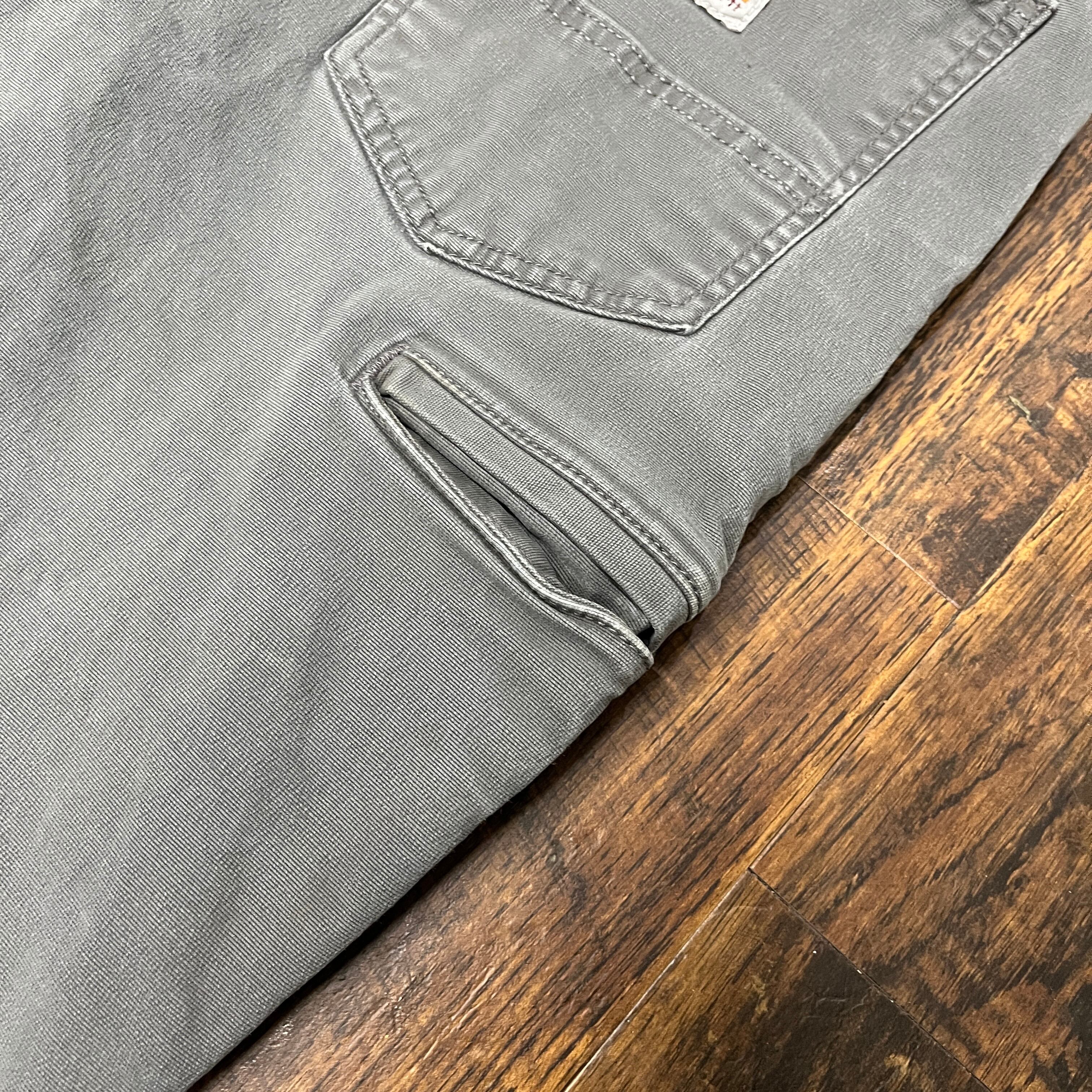 リラックスフィットのグレーのワークパンツ、耐久性に優れたデザイン。