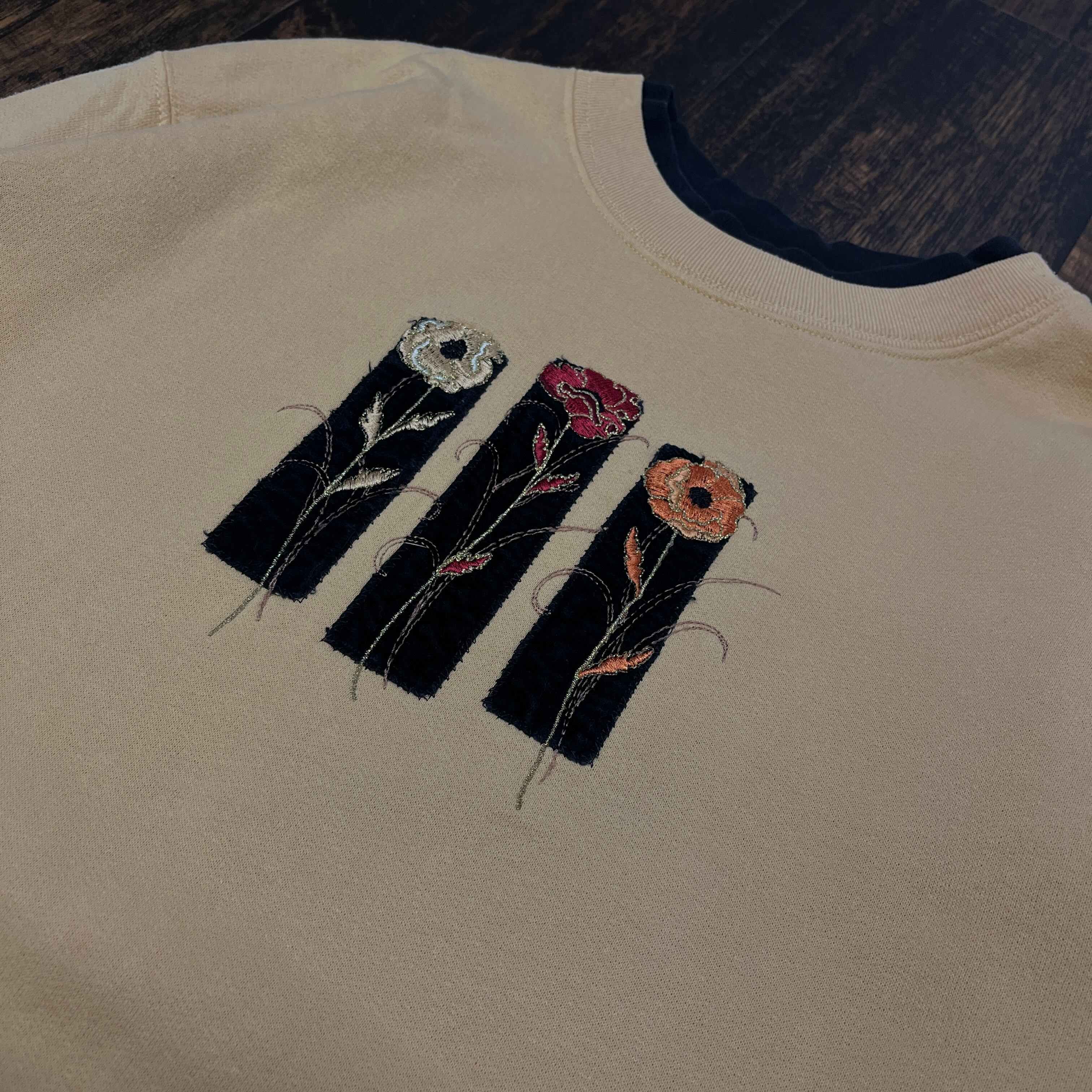 花刺繍 ベージュ トレーナー S 90s 古着 アメカジ
