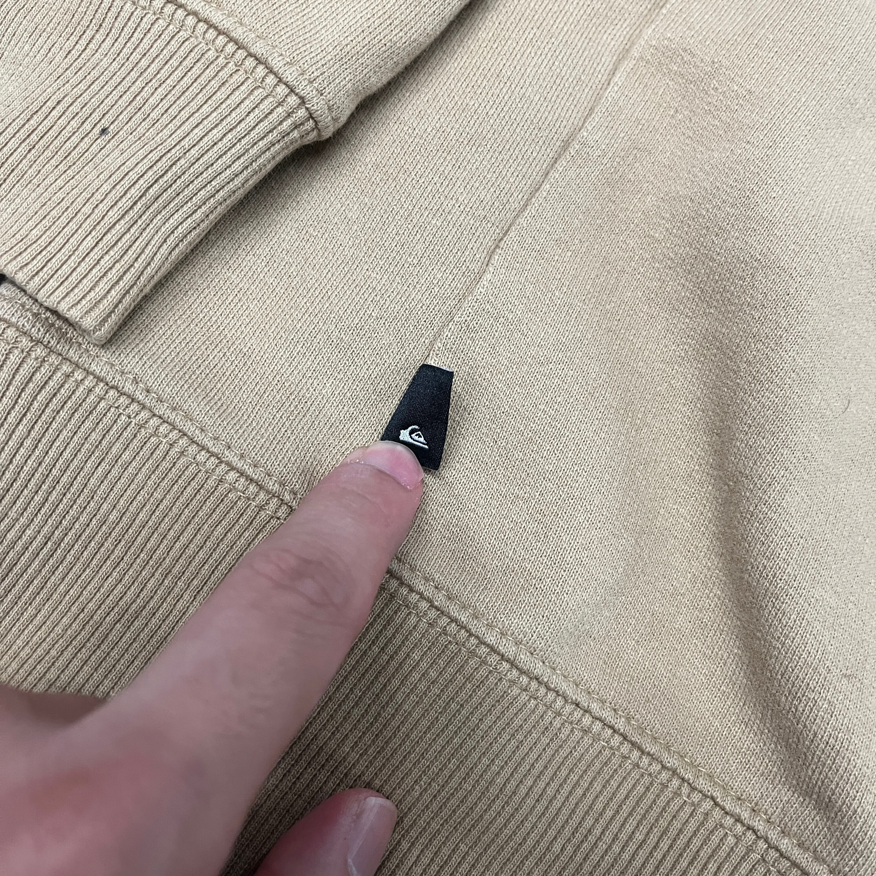 ベージュのQuiksilverロゴ入りスウェット。カジュアルなスタイルに最適。