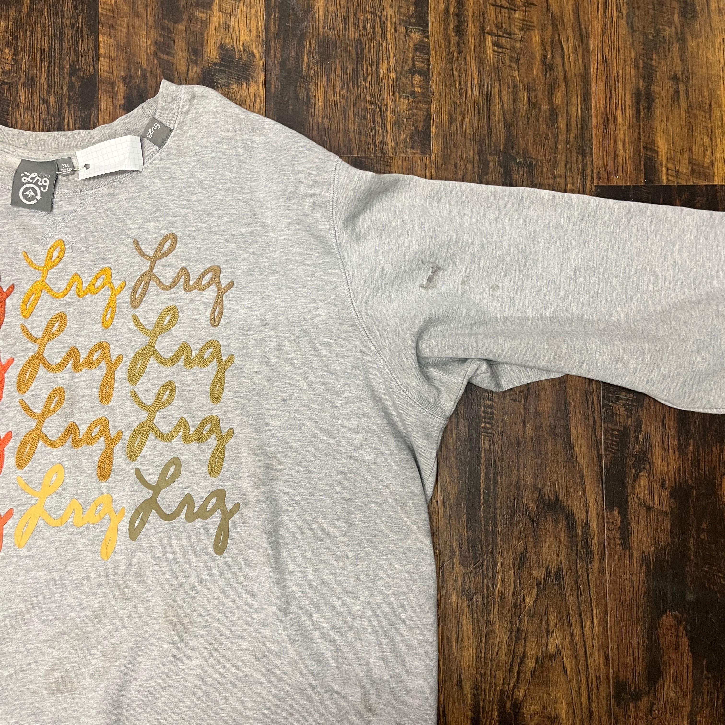 LRGのロゴがプリント、刺繍、ワッペンで施されています。