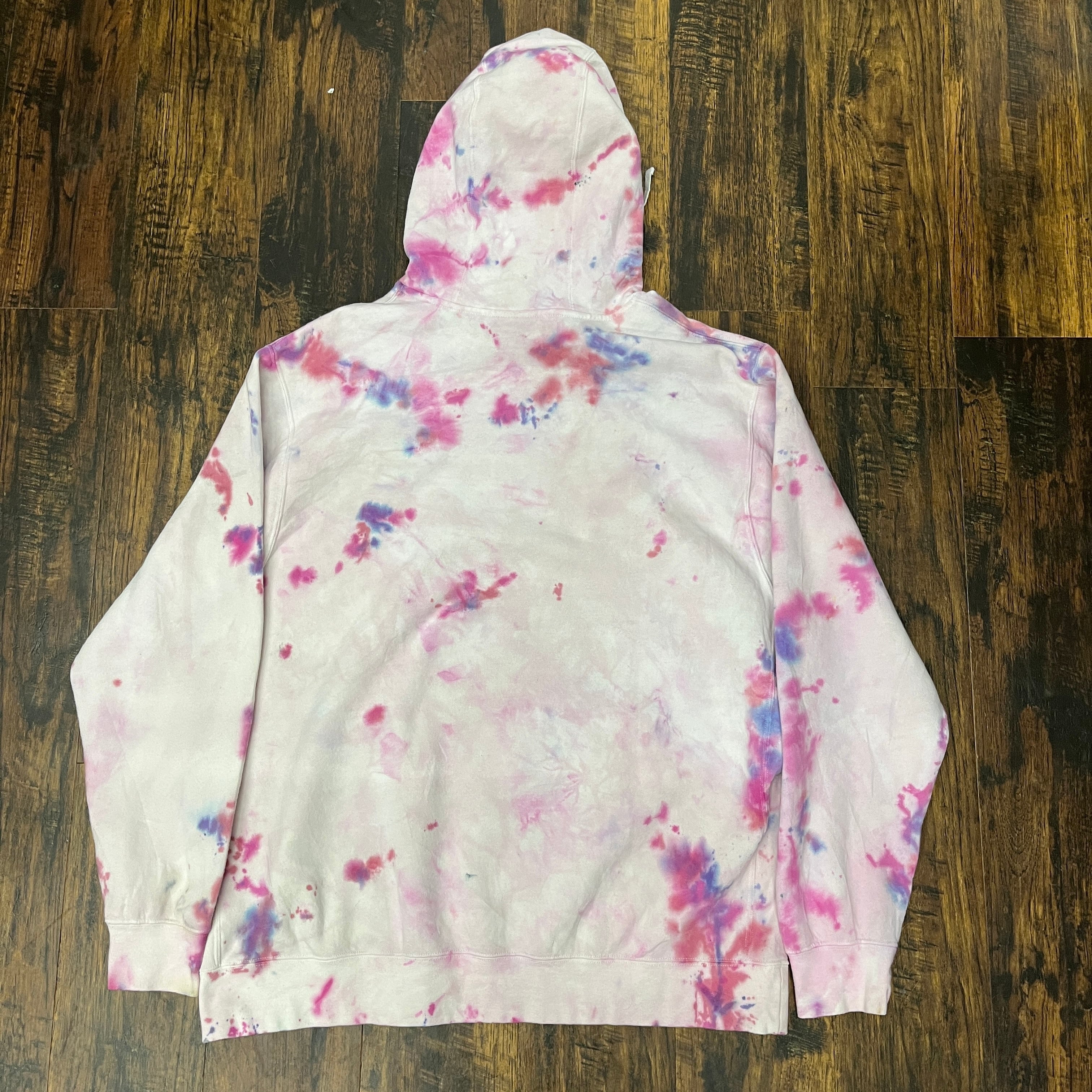 ピンクとホワイト、パープルのタイダイデザインのNikeフーディ。