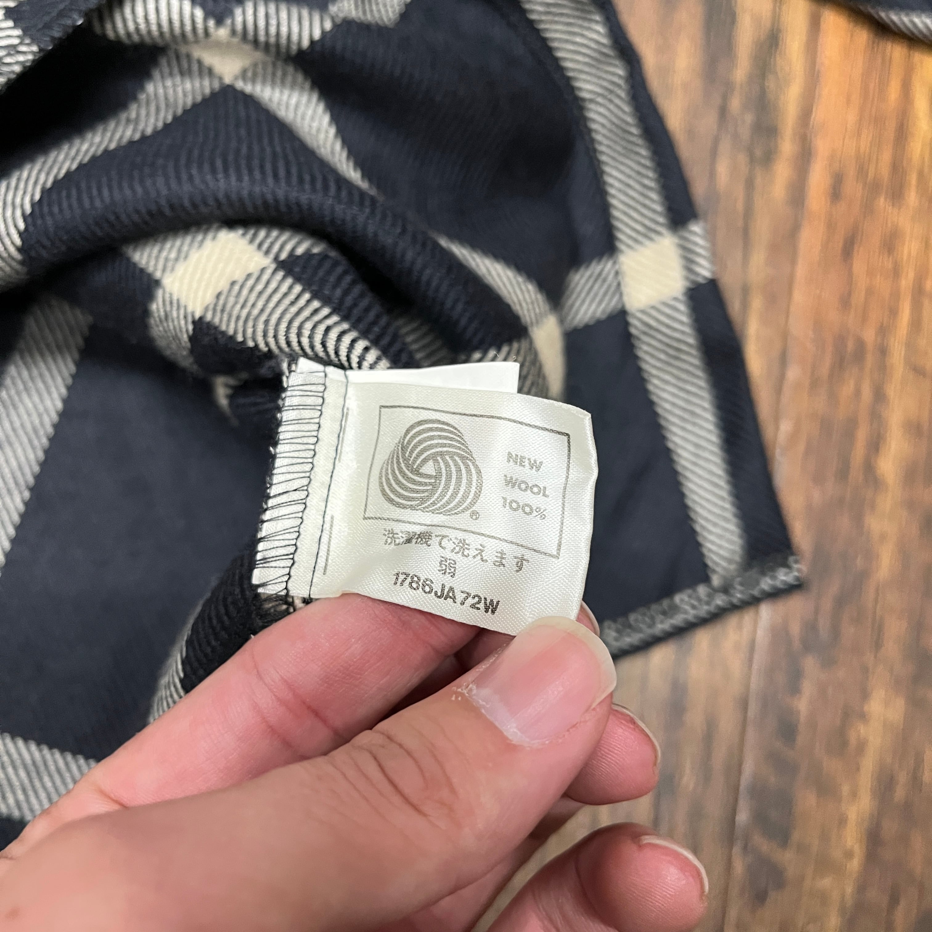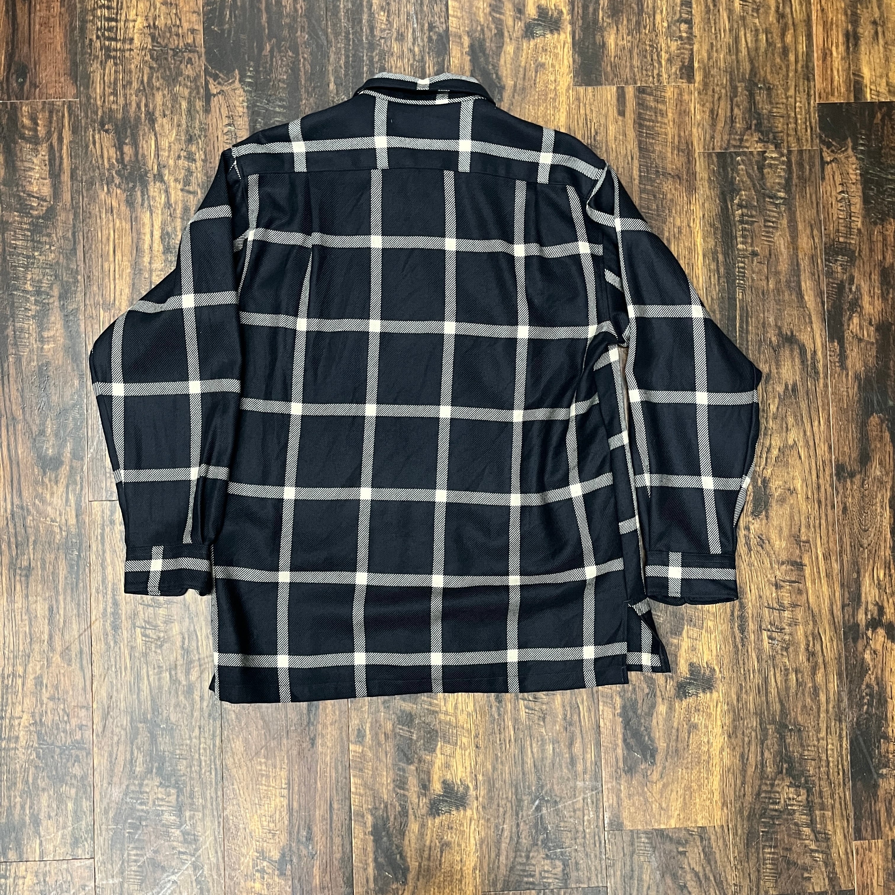 黒と白のチェック柄のネルシャツ、ボタン付きポケット付き。