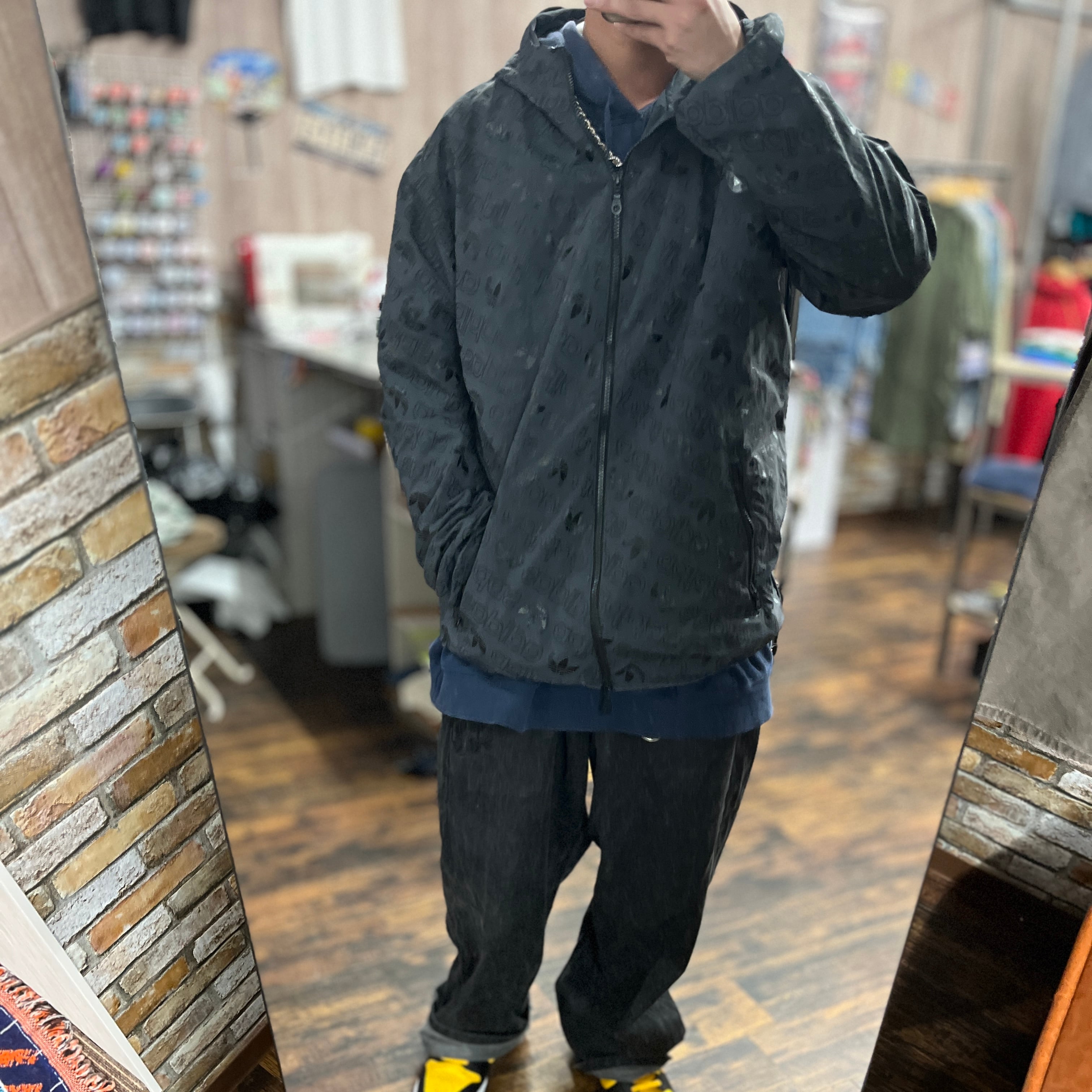 adidasのロゴが施されたフード付きナイロンジャケット。