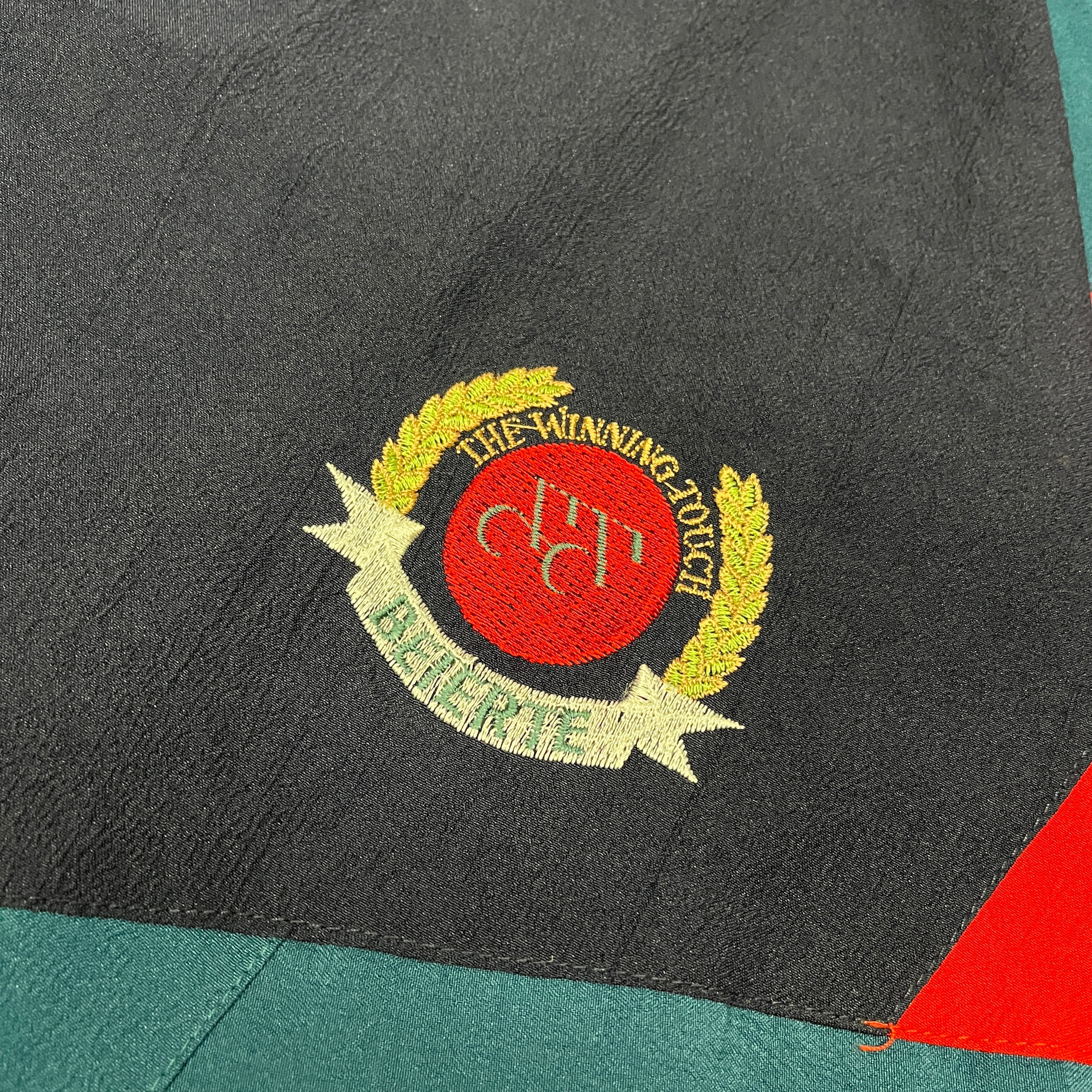 ジップアップデザインのカラーブロックナイロンジャケット、THE WINNING TOUCHの刺繍入り。